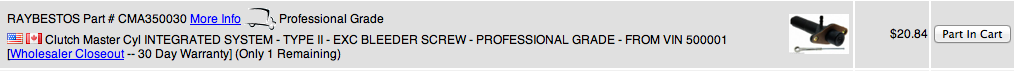 Clutch Master Cyl INTEGRATED SYSTEM - TYPE II - EXC BLEEDER SCREW - PROFESSIONAL GRADE - FROM VIN 500001clutch