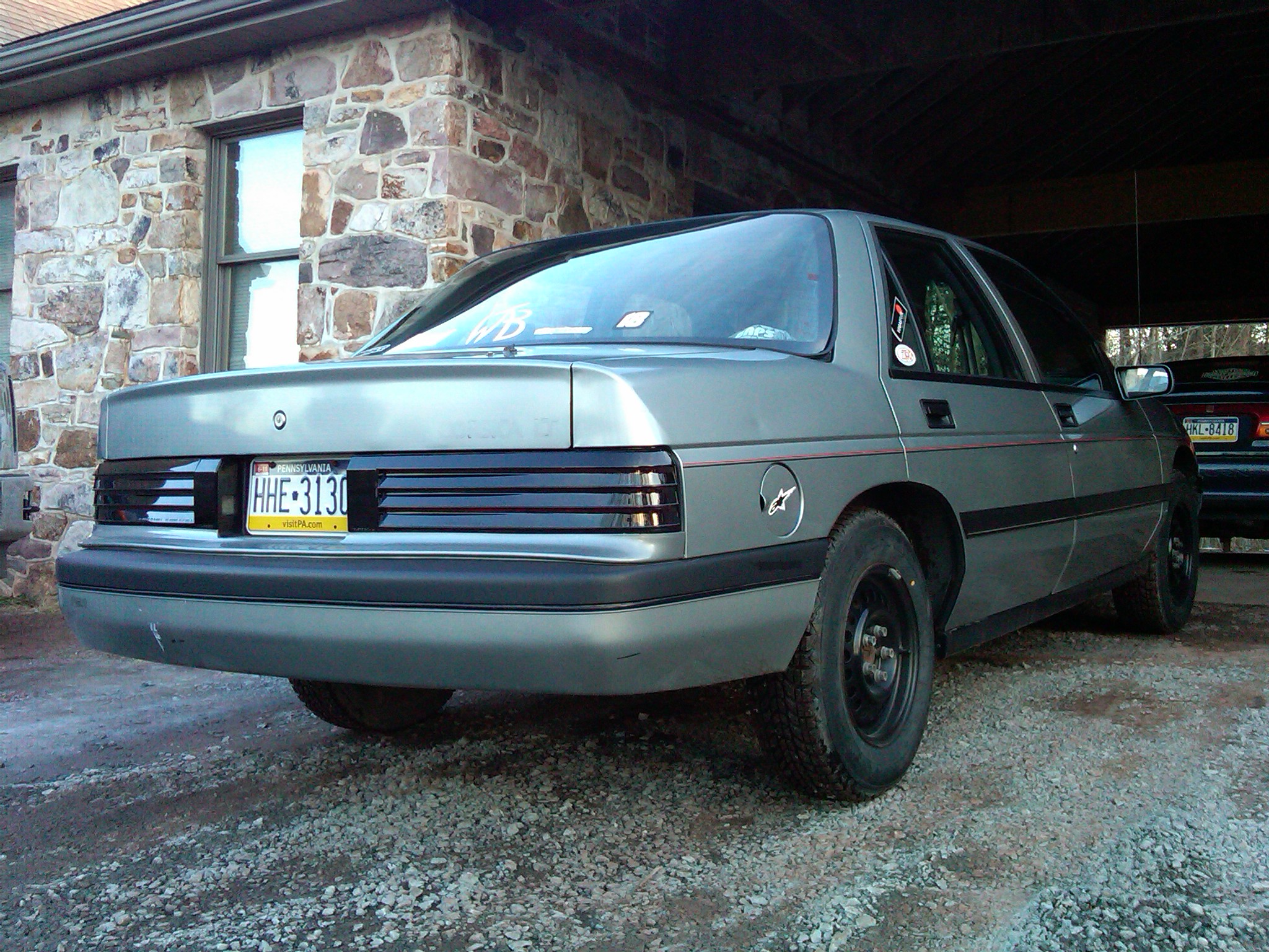 hahaha thanks. yeah decals goin bye bye after i get it tinted. and im refinishing these wheels in graphite before spring shows up. wrapped in bfg radial t/a's white letter. 205/60R15. those are my winter wheels with the monster treads.