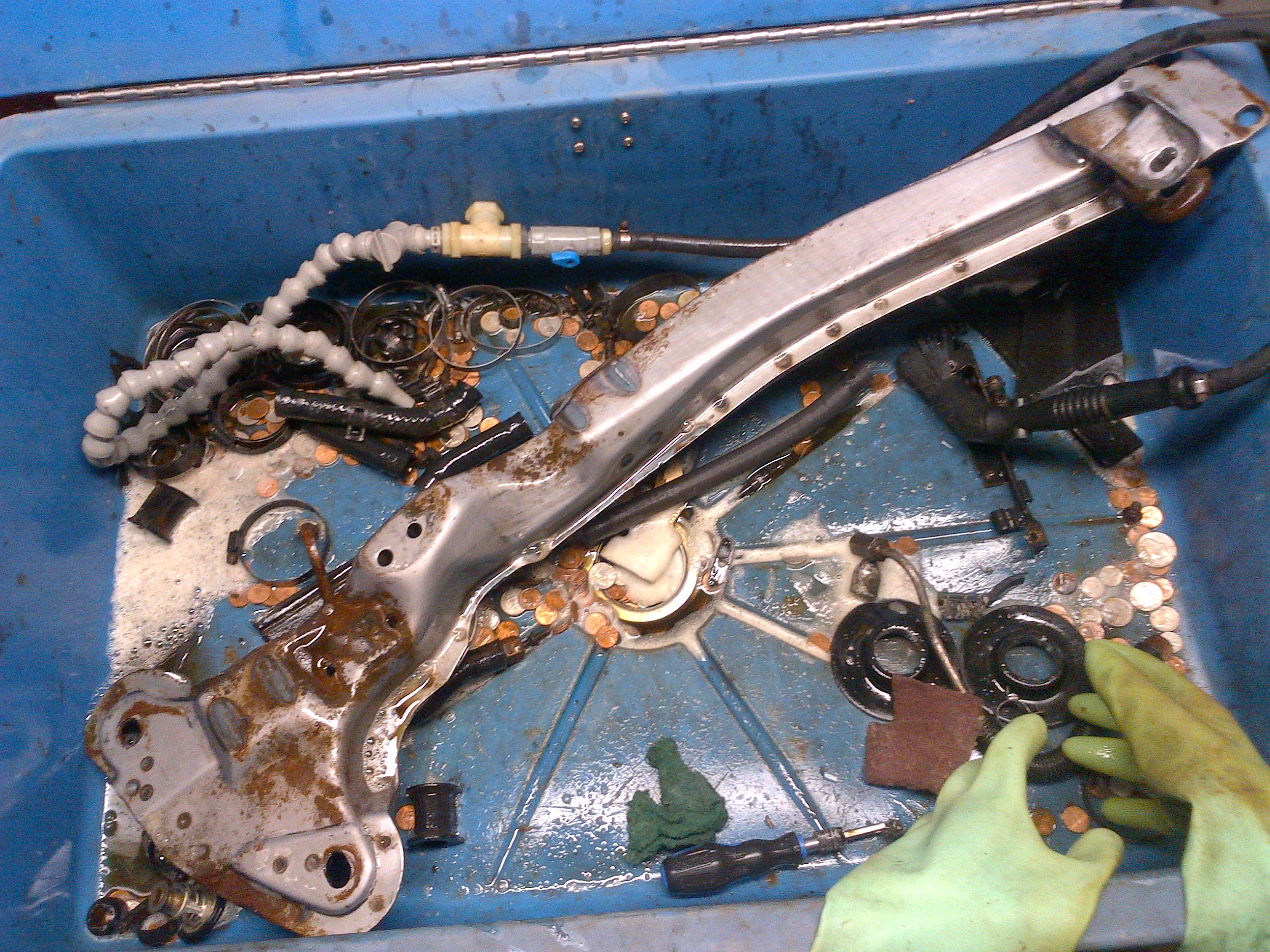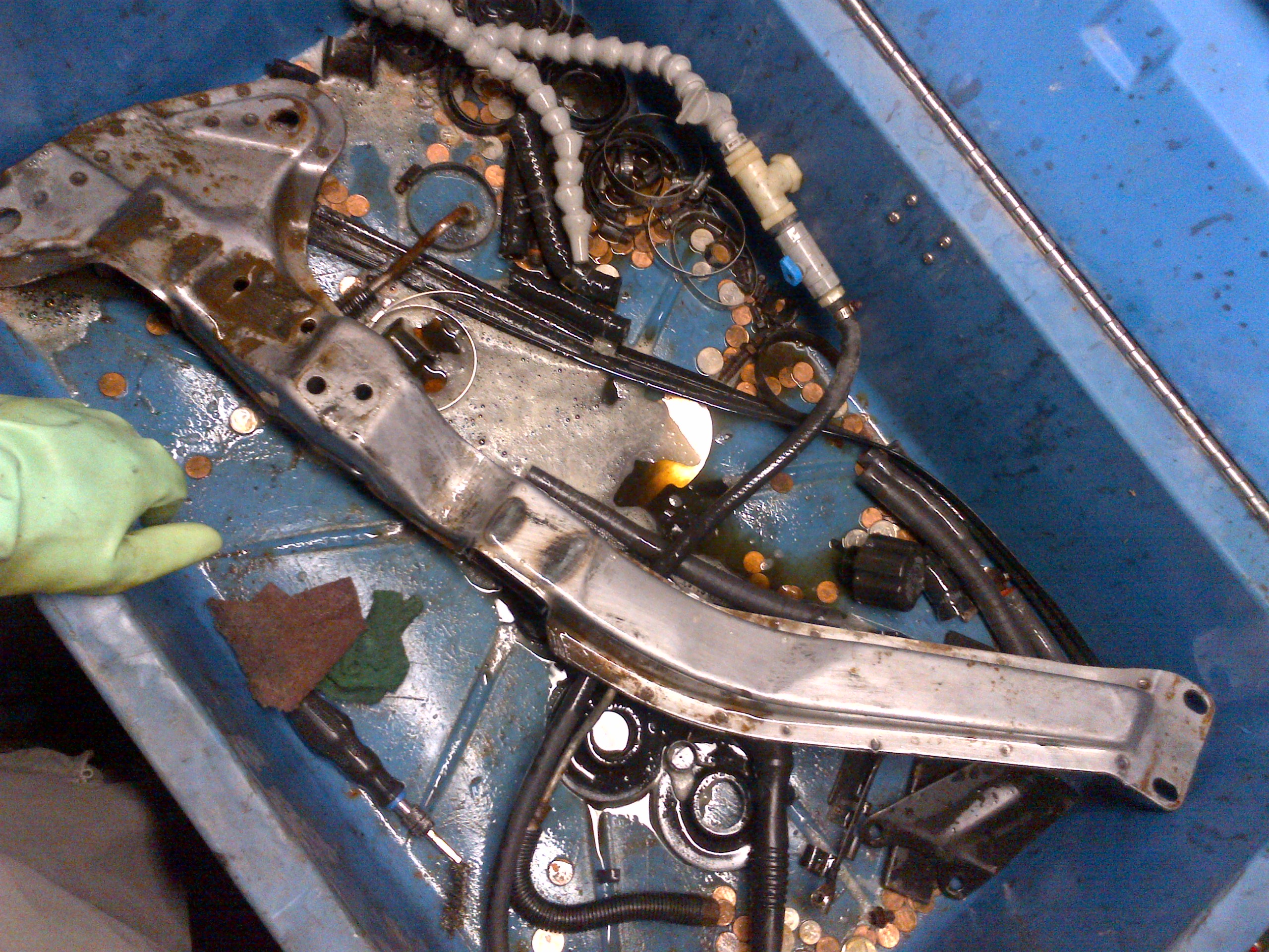 If you're interested pm me an addy and I'll get a shipping quote. I wont be attending any meets other than the local pontiac show this year unfortunately. Here's a few more pics from an hour ago. I cleaned off the grime in the partswasher and then gave them a good coat of WD40 to prevent any rust until they can be painted or coated.
