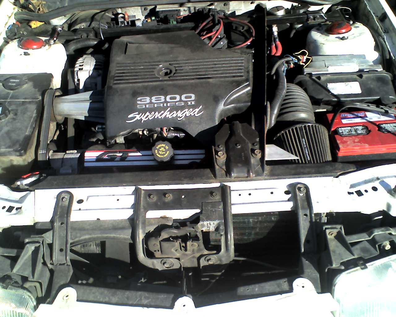 I did a full write-up on the 3800 swap back on the bstuff site, which is gone now, and I had it all stored on my old computer, which was stolen about two years ago. I can answer questions for people on it, but basically I proved the swap could be done with the tools necessary for any engine swap, a power-drill and a hack-saw (I also used a MIG welder and a porta-band, but they weren't strictly 'necessary'). I also made my wiring-harness as a plug-in to the Beretta's engine-bay wiring, so there is nothing permanently modified on my GTU, except for two holes in the right sub-frame, and one ground-wire from the fuel-pump was cut and spliced. This was not strictly necessary either, as I ran the 3800 on the GTU's stock pump for about a year before swapping in the 3800's multi-speed fuel-pump control and a Bonneville SSEi 3800 SC fuel-pump. I also cut-out some of the ground effects, where they were cracked anyway, for the exhaust-outlets, one on each side. I do have some more pics of the cars on here, I think I have some in the 'Members Rides' section.