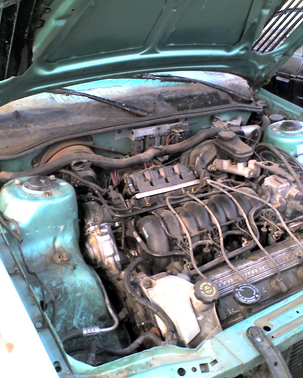 My '90 Turbo was upgraded with a 3400 block and ported-out 3.1 MPFI Turbo top-end, modified for roller-rockers and 1.5" primary headers feeding a new Garrett T-4 externally waste-gated turbo-charger. I've been fighting chronic oil-leaks from the turbo's supply-lines, and have been playing with different instrument clusters for it, so it hasn't gotten much run-time since the swap was finished.