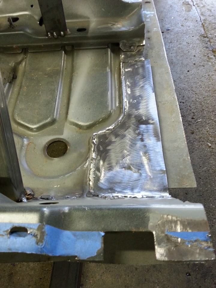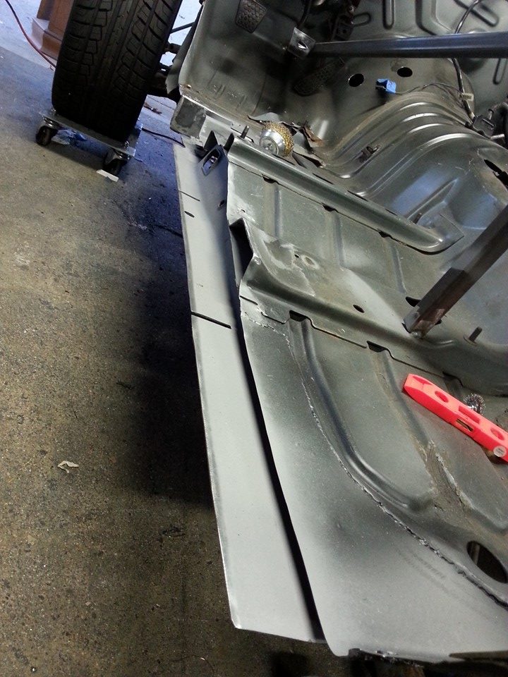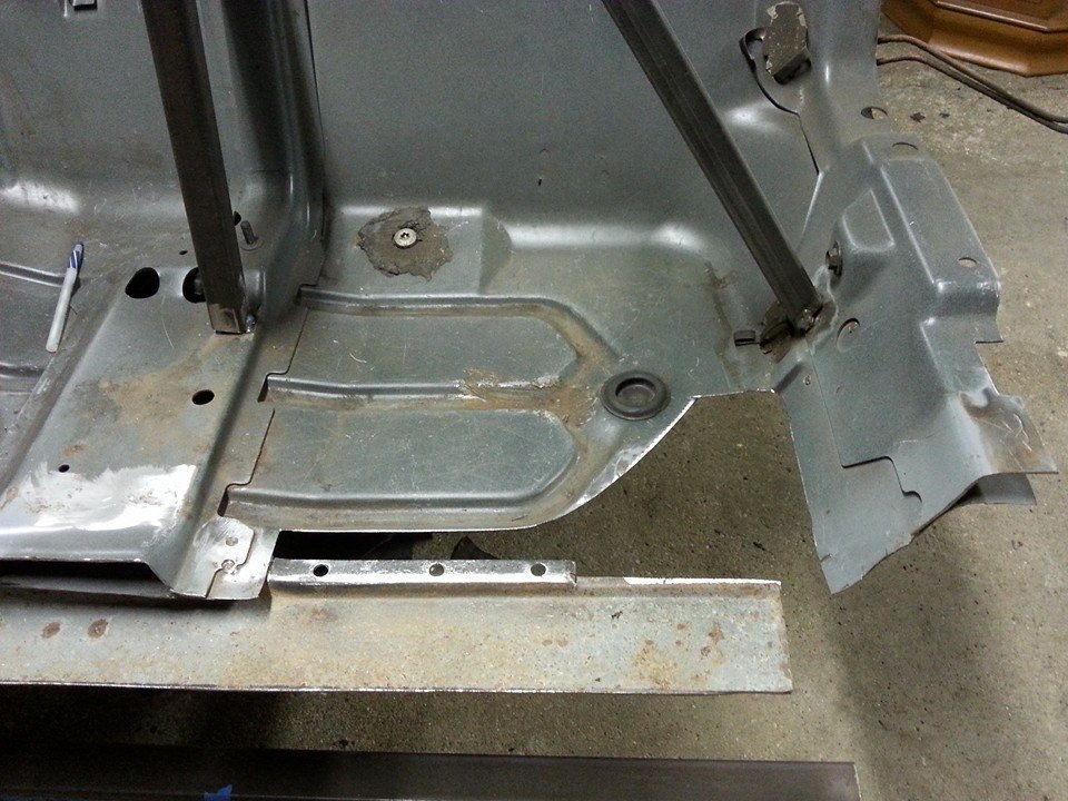 Cleaned up the old rail inners and welded in new body rails on floor pan....