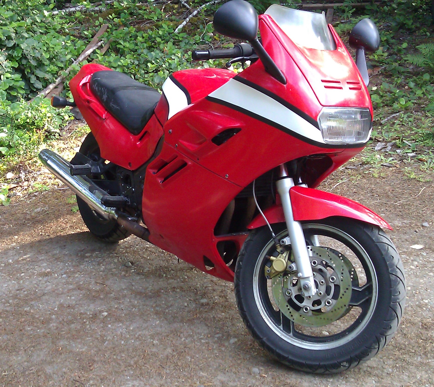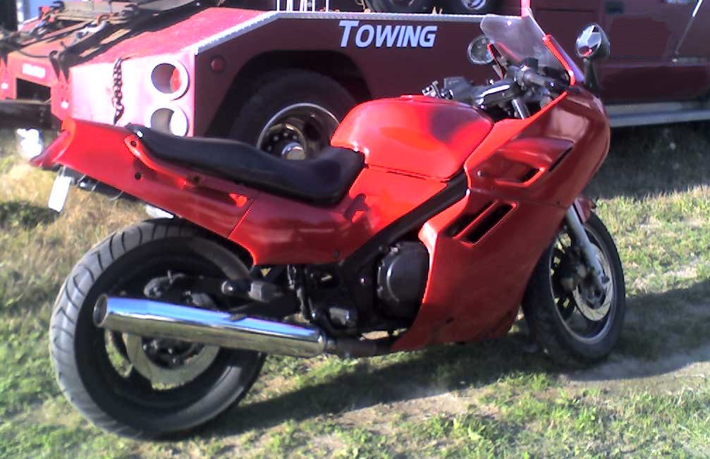So after my ZX-11 (Kawasaki's answer to, well, EVERYTHING back in 1990, as it was the fastest production streetbike in the world, EVER, for about six years running until Honda's Blackbird and Suzuki's 'Bird of Prey' showed up) was made unusable by vandalism a couple of years ago, I have been looking for another open-class bike. I've looked at old Honda VF1000F Interceptors -really cool classic sportbikes, but overpriced for what they can do-, other ZX-11s, even ZX-9Rs. I revisited old interests like the Honda CBX -a straight six sitting sideways in a bike frame calls for at least one double-take-, older Kawasaki Z-1s, and the VF1100S Sabre (I still own a pair of the original, first-year VF750S Sabres, great bikes). I checked out newer models, like the TL1000s, and I even test-rode a ZX-14. Nothing quite called out to me though, and with a very limited budget I had a smaller pool of options to pick from.