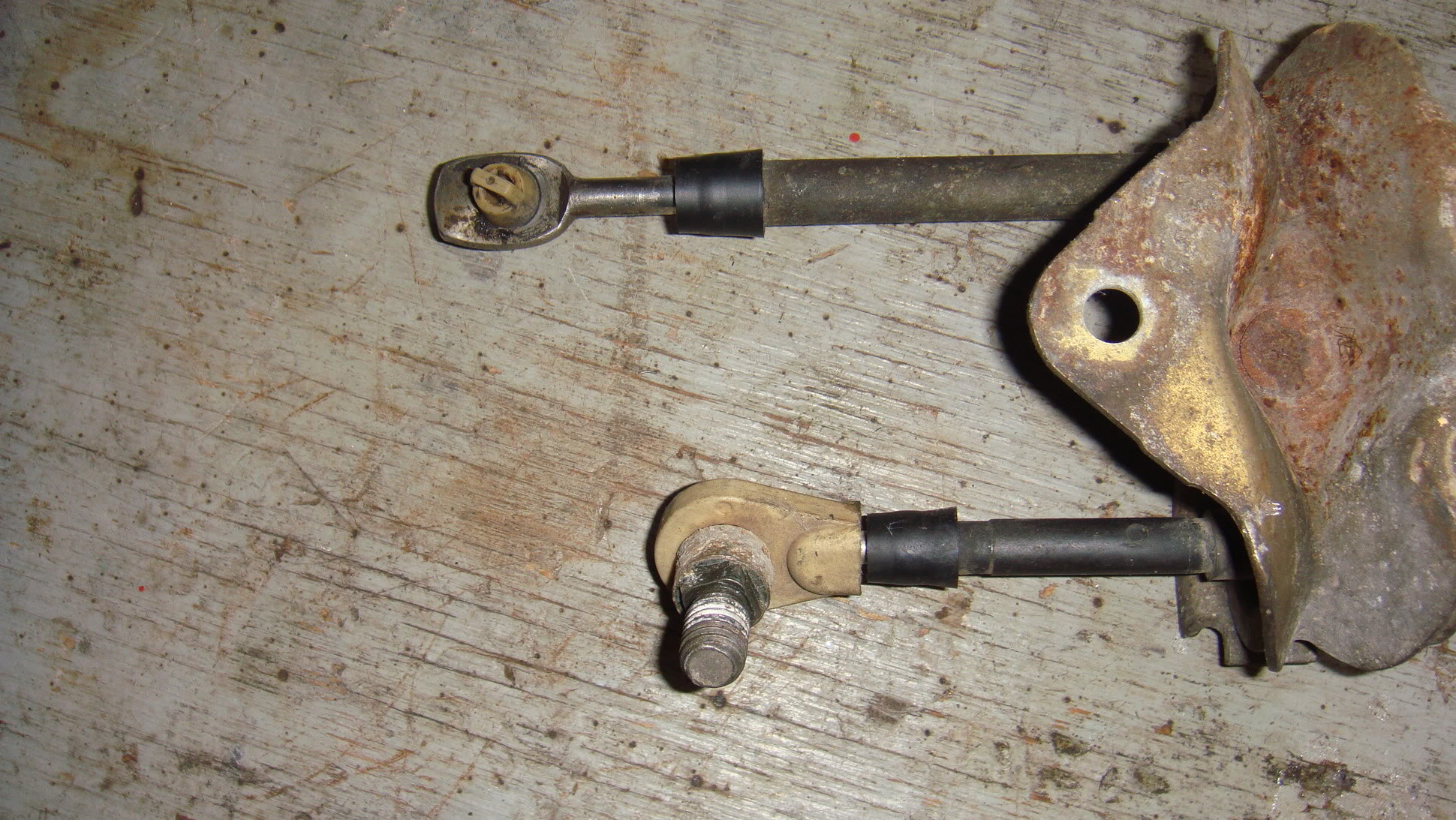 Here is the bolt/pin im talking about. Its stuck in the cable. When the bushings get old its easier to unbolt the whole thing then it is to pry the cable off.