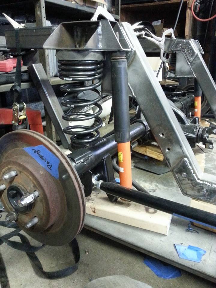 Welded all upper suspension mounts on the the rear sub frame. And final mocked up the springs and shocks..