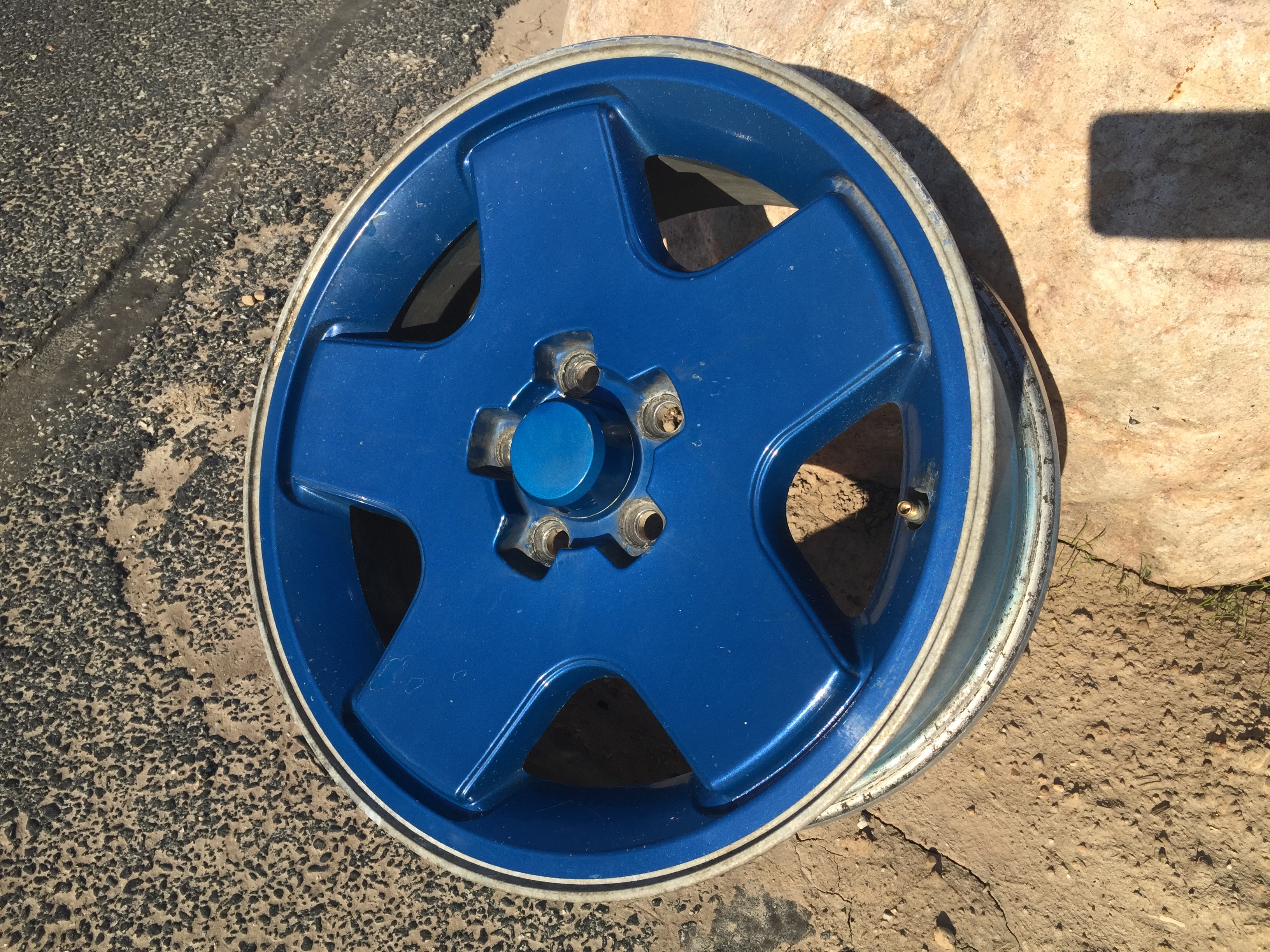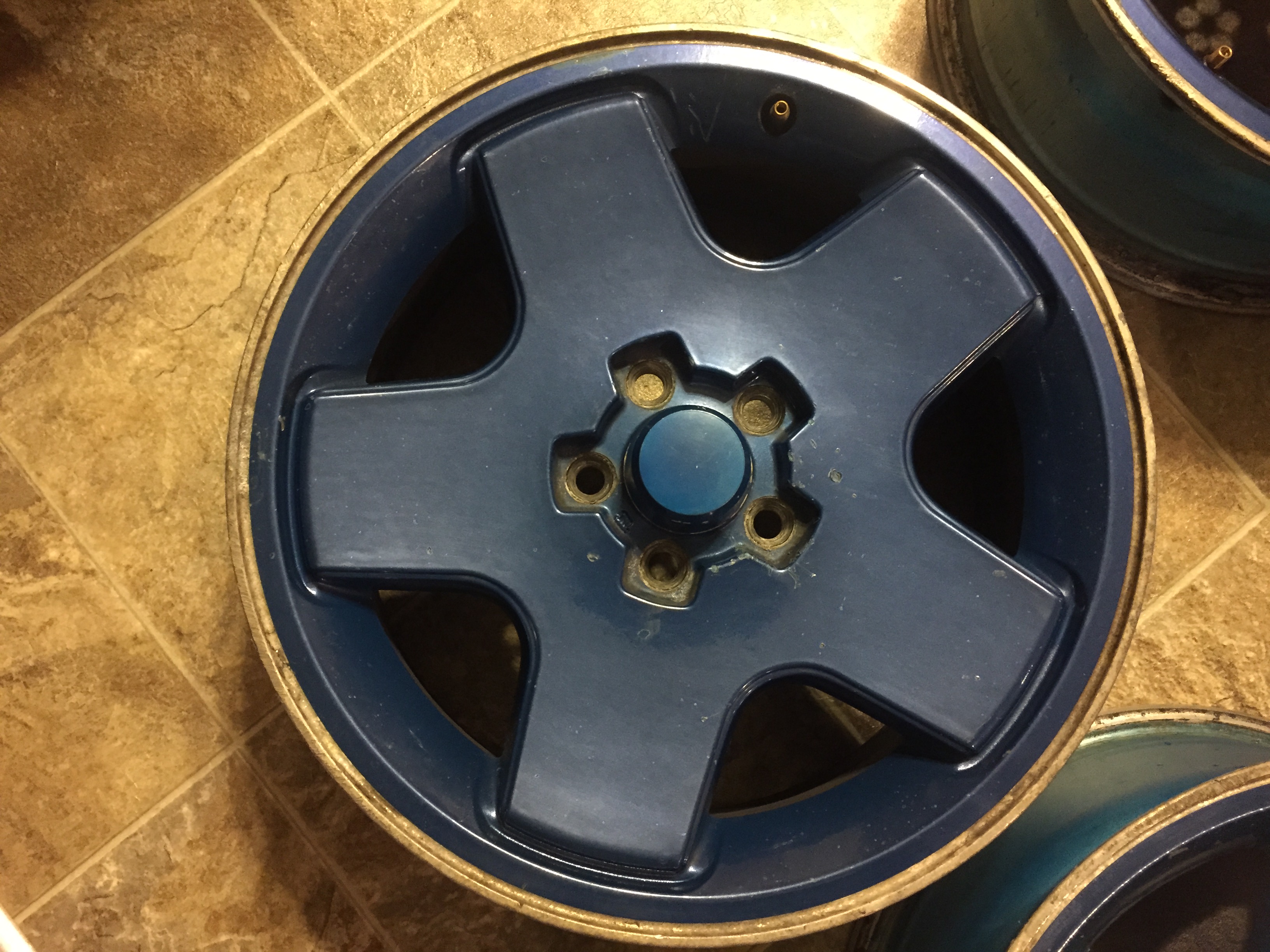 $100 located in Manitowoc, WI. This set of GTZ rims come with good condition center caps, and have very very little curb marks on them. I would rate them a 7.5 out of 10 as they do have some clear coat flake and one of them seems darker than the others. These would be a great platform to refinish or change color on!