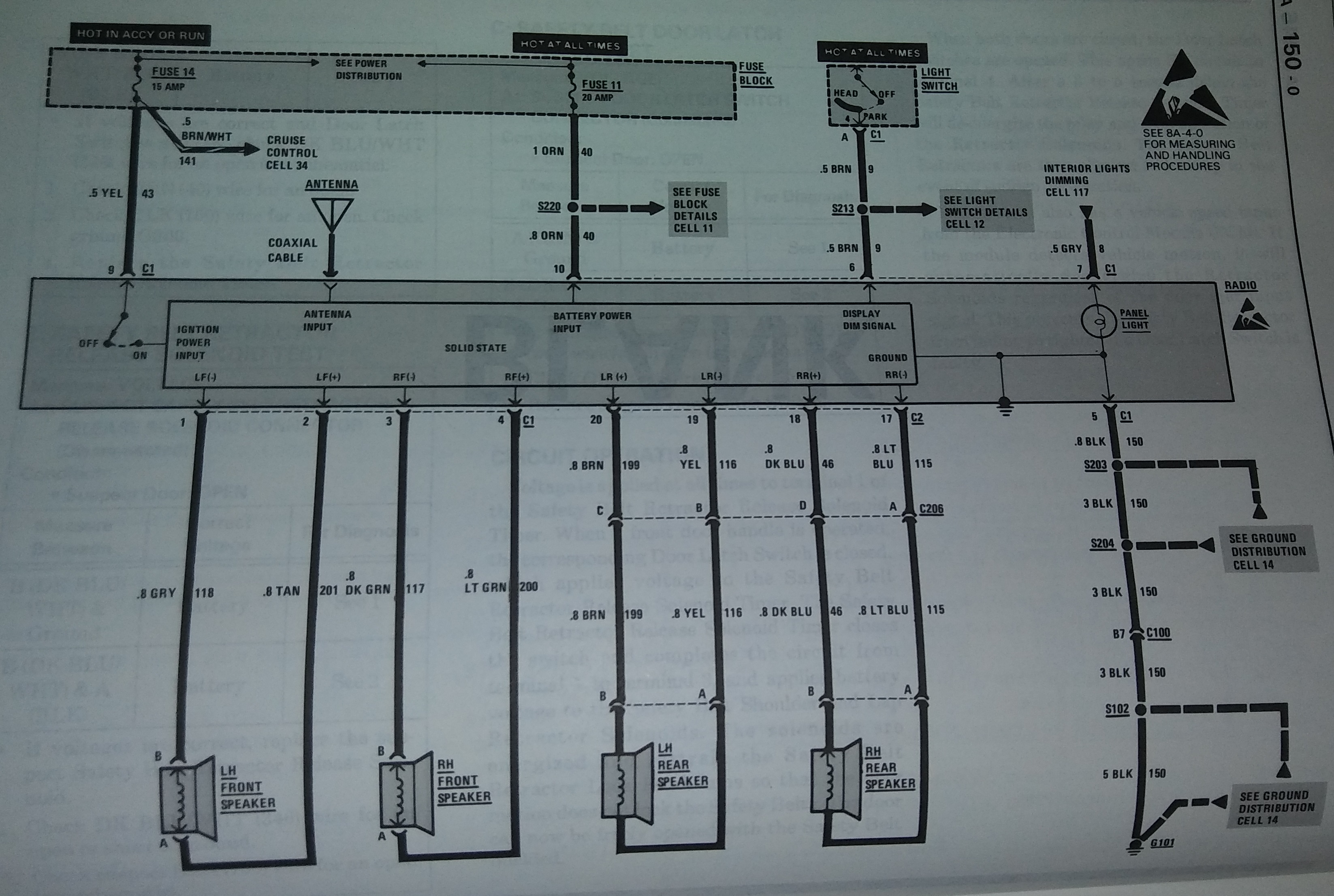 Headlights, interior lights, and radio look to be running off of fusible link D in the schematic below.
