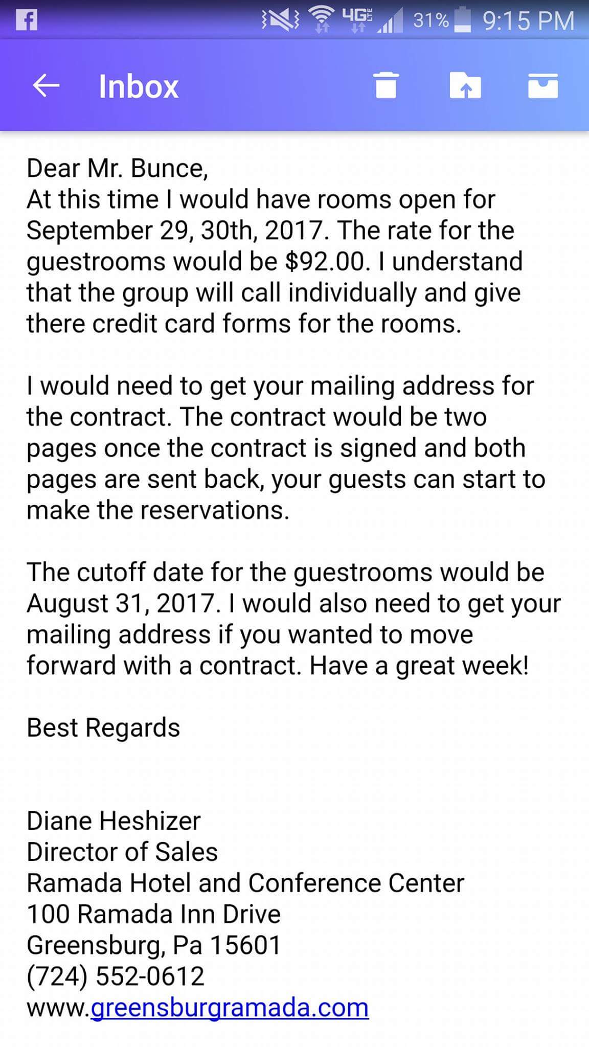 Northeast Fest Sept 29th to Oct 1st. Check-in 9/29 @ 3pm at Ramada Inn Greensburg 100 Ramada Inn Dr Greensburg PA 15601. 724-836-6060