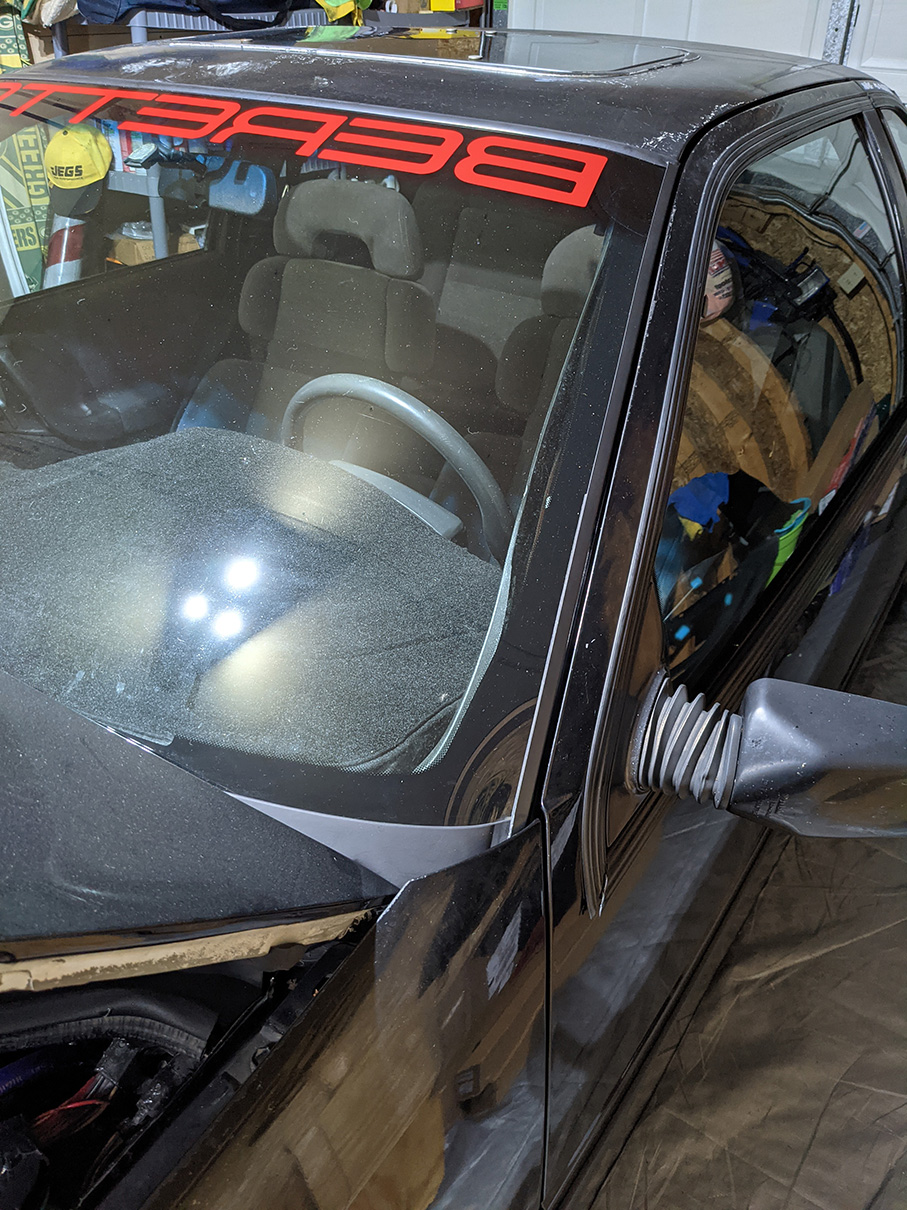 My blackened windshield trim is delaminating.
