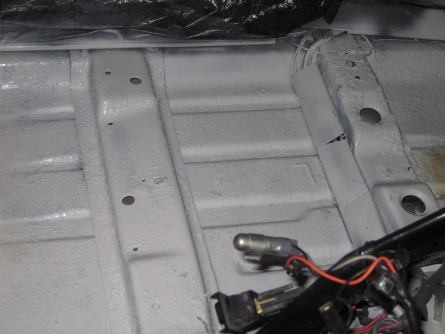 Pulled out the interior and it will be done next Tuesday. In the mean time, I pulled out the carpeting and found some rust on the floor. Been busy sanding it down, priming it, painting it and repainting the seat rails.