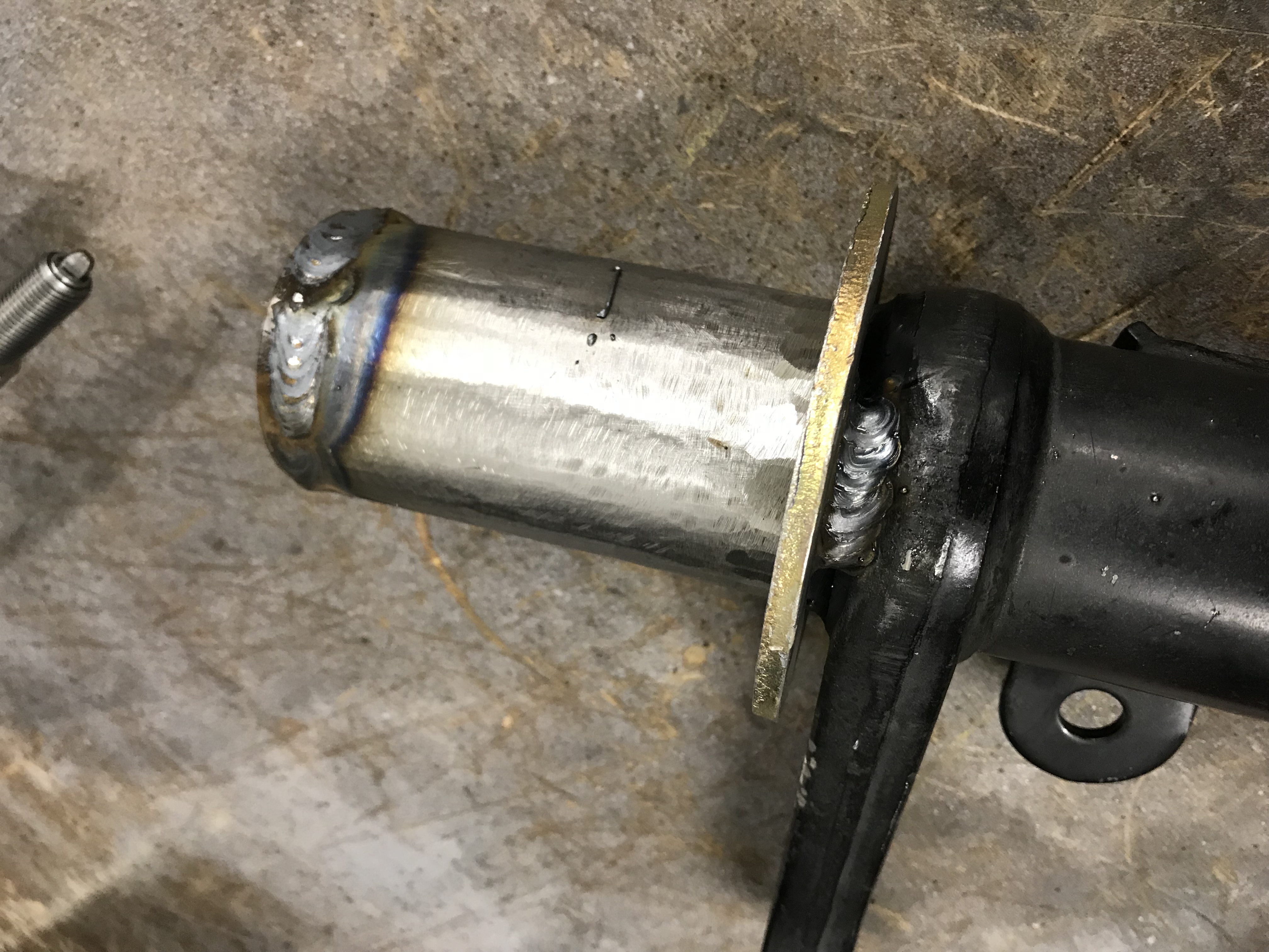 Finished modifying the struts; still need to weld the base of the coil over sleeve support (aka the washer) and weld the adapter sleeves to the top of the strut tube, and paint them, but here they are assembled.