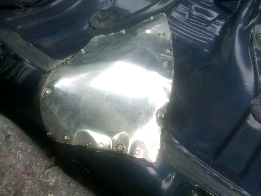 Thanks for the comment! I did get the hole issue 95% resolved today. I finished forming the piece that was in the car. I put foam tape on one side of it and then put a heavy bead of form-a-gasket on the floor. Then I screwed in stainless steel self-tapping screws with stainless washers. once finished I got back under the car and dremeled offthe extra pats of the screws so they dont puncture the new tank. The only thing I have left to do is spray both sides with rubberized undercoating. Here's some pics: