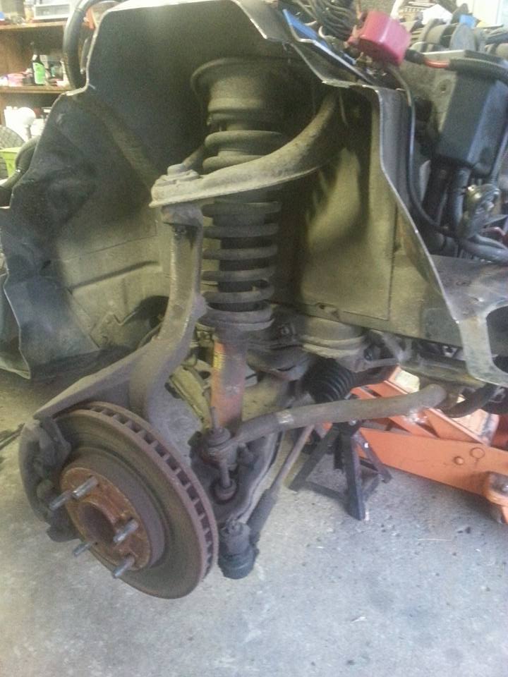 well the roller didnt last long..........Removed front suspension in prep for the new 1" lowering springs .....which I am afraid wont be low enough and Stiff enough........... might see if there are some spring and shock combo that will be more like a 2 or 3 in drop........what to do??????
