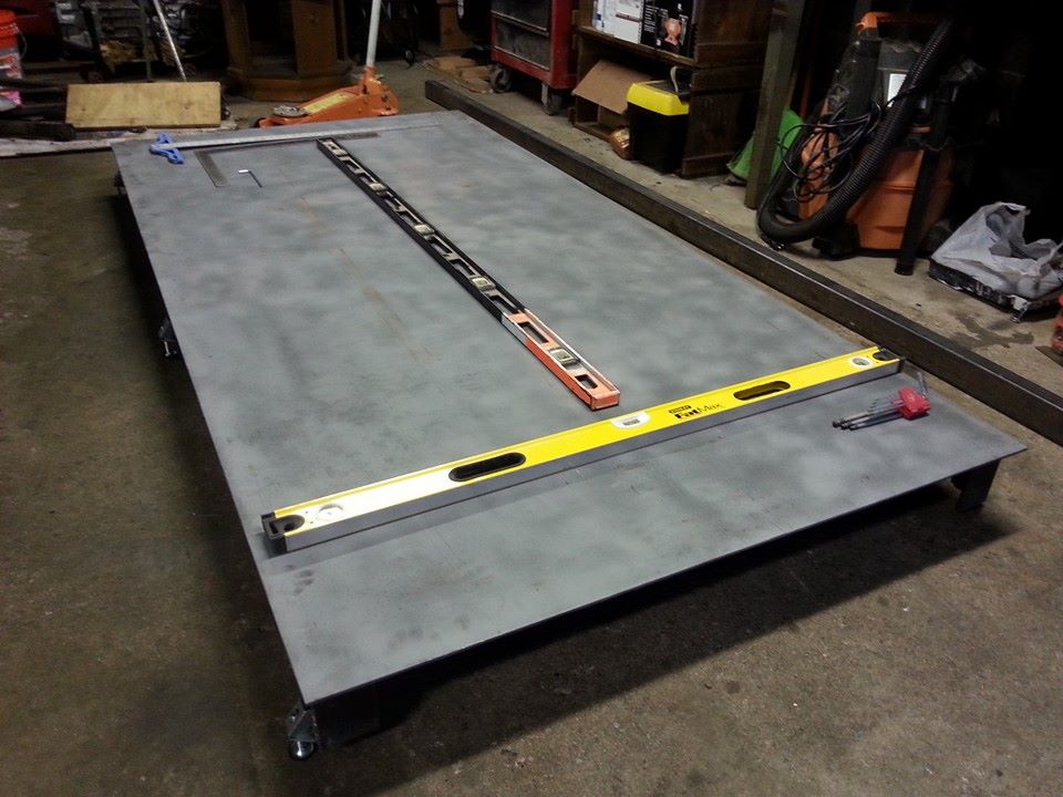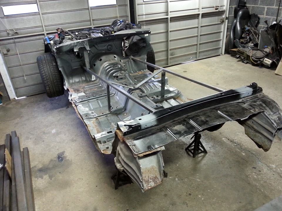 made a 4' by 8' welding table/surface plate. and made templets of the stock uni body frame rail sections from the fire wall back.