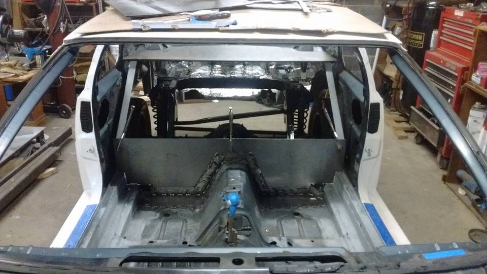 Fab work coming along on the rear firewall. Side panels tacked in. Ready to have some beads rolled into the top and front panels then weld those in as well