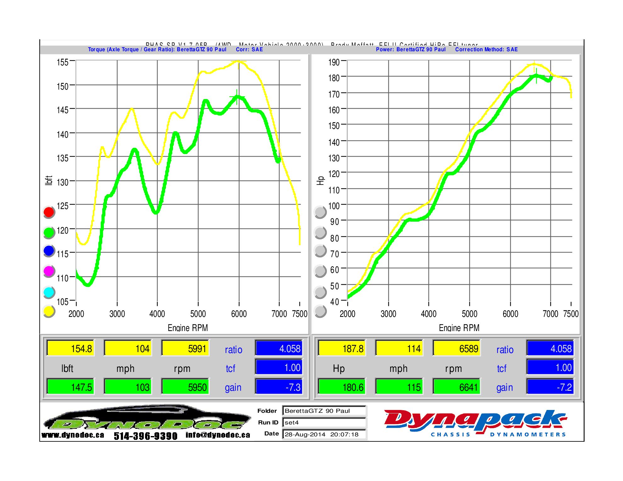 My latest dyno, done at the dyno doc on august 28 2014. we just installed the 35lb injectors. we had an increase of 9HP and 9 LB of torque. 189 HP, 155 Torque