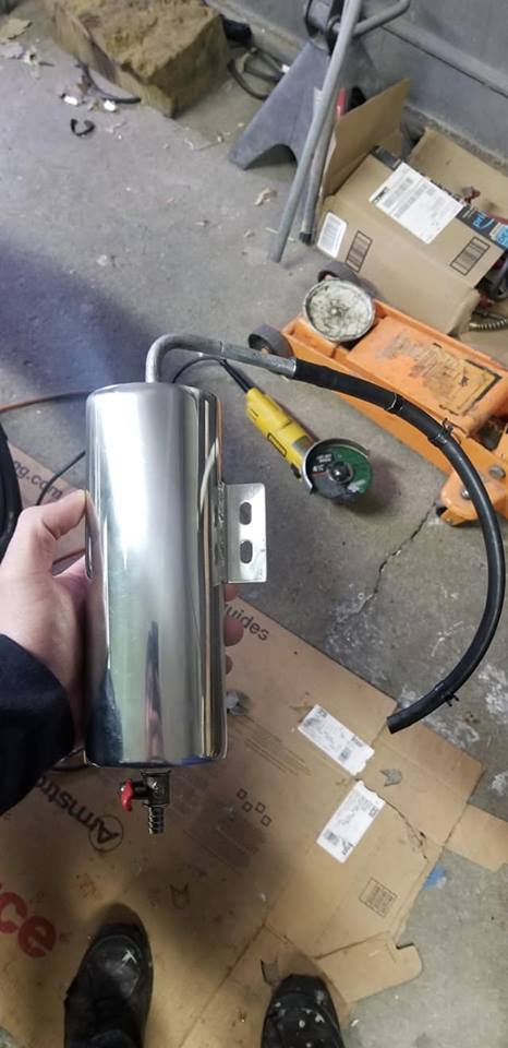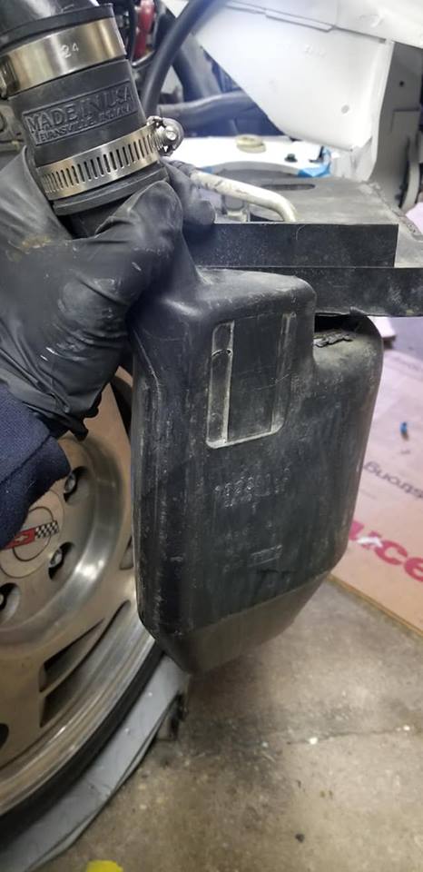 Had to ditch the factory coolant overflow due to tire clearance issues. Was able to retro fit the factory recovery hoses and tube and plumb it into this aftermarket tank and relocate it under the header in front of the core support