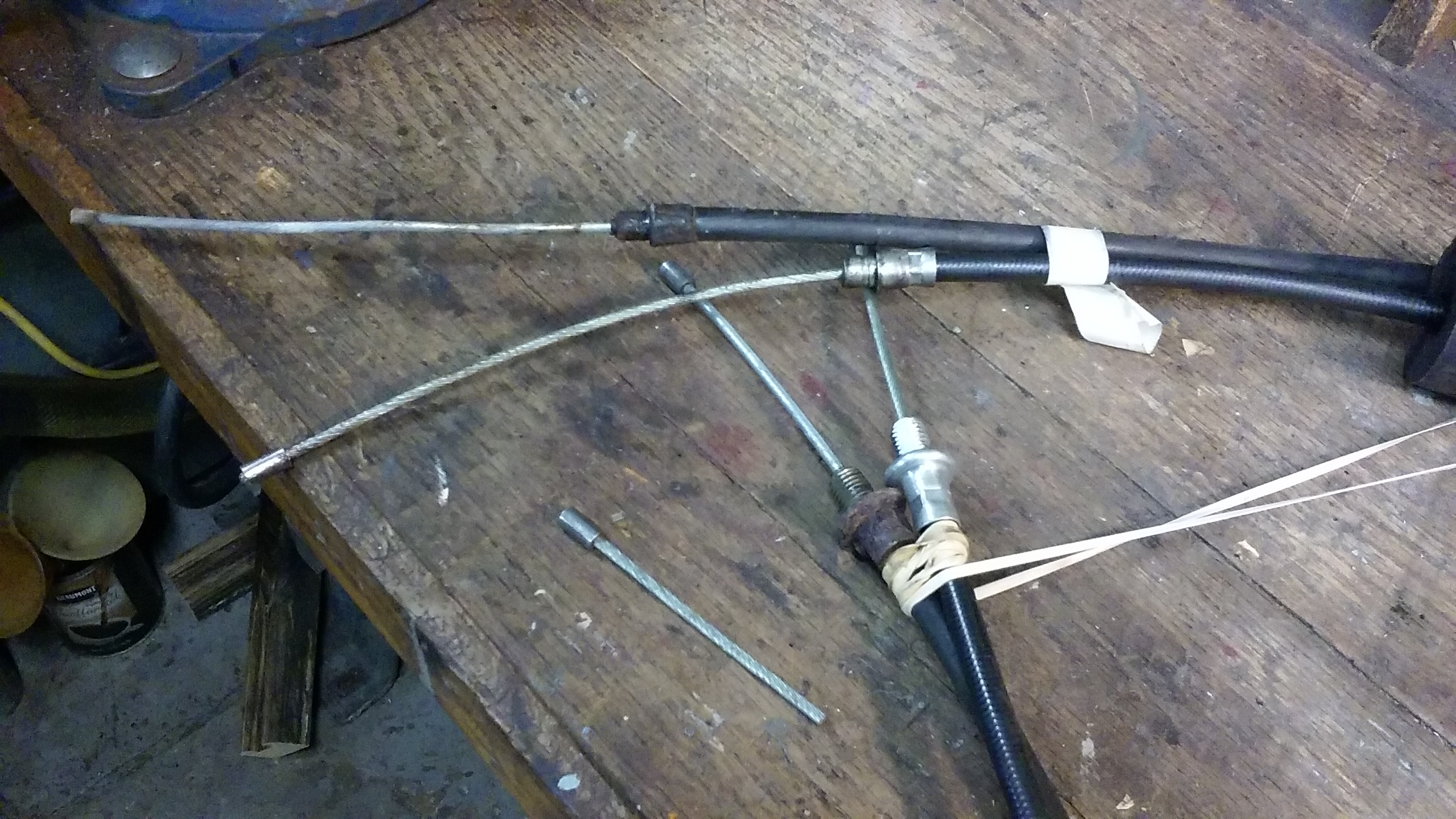 Here is the old and new cables taped together. One can see how the sheath is shorter and the inner cable was longer. The piece of inner cable