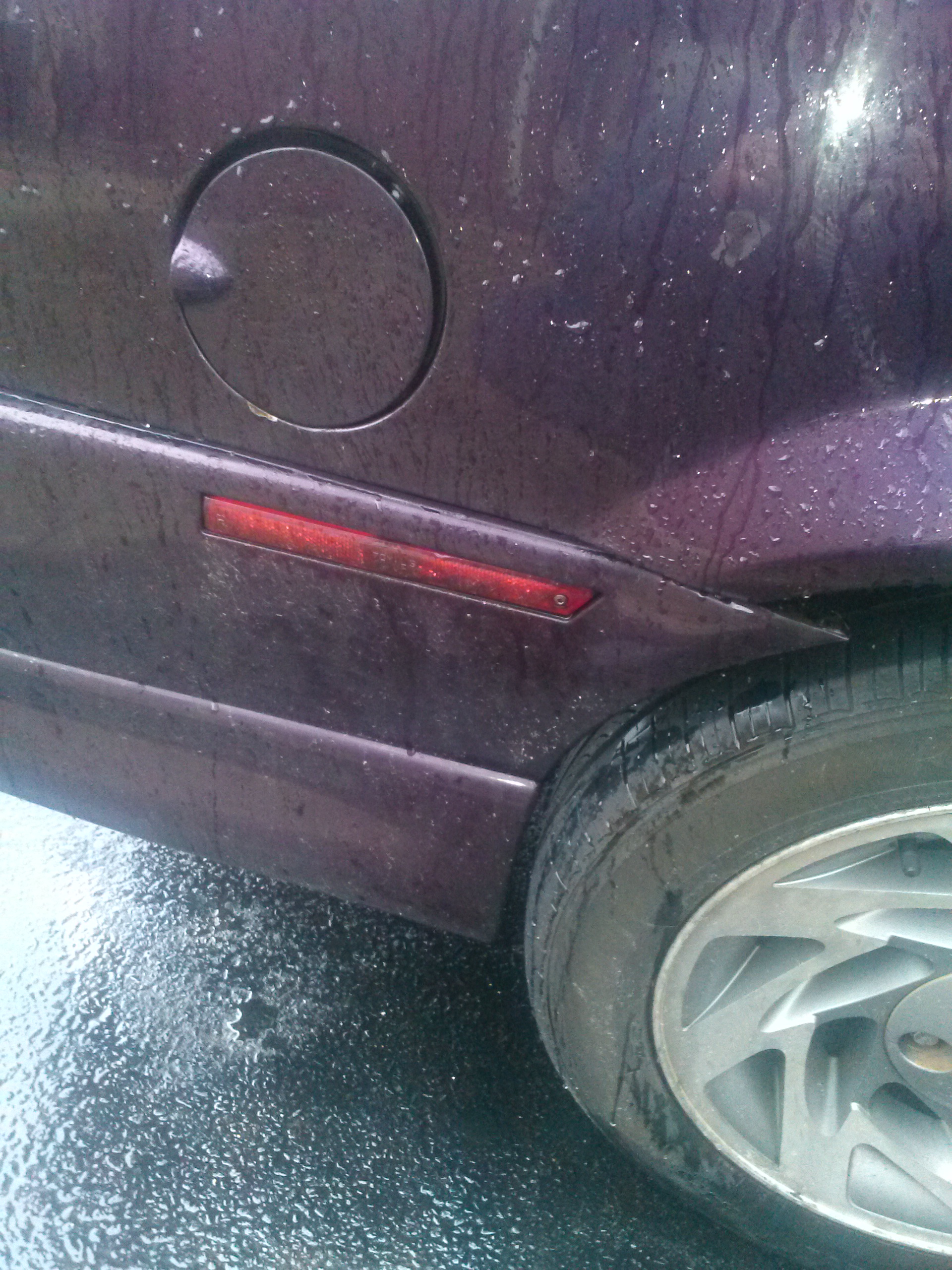 Okay, so here's the bad. The AC clutch is screwed up, so it rattles when running. It starts every time, and have never had any problems with the way it runs, aside from when my trans cooler line was leaking). It also has the infamous firewall leak, unfortunately. About a month or so ago, I hit a curb, and so it needs work on the front end. I was able to drive it around and parallel park it yesterday, so it can't be THAT bad, but does need work. I got hit from behind as well when I hit the curb, but all that resulted was a pushed in rear QP. It is not interfering with the tire. I'm in Maple Shade, NJ and available to show the car after 4:30 pm or on the weekend. I'll attach pictures, as well as post my CL ad.