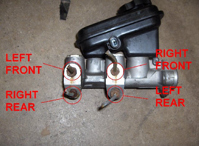 Looking for a simple diagram showing where the brake pipes go into the master cylinder, IE the distribution order