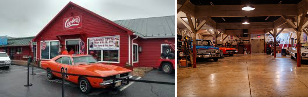- Features Dukes of Hazzard Museum and Replica Cooter’s Garage with General Lee, Cooter’s Tow Truck, Boss Hogg Caddy, and much, much more!