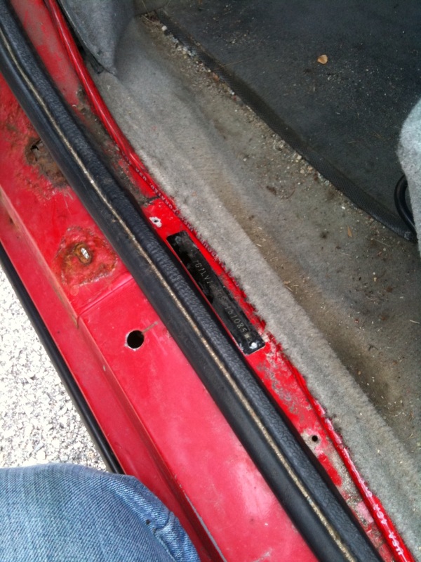Here is a pic of were a factory tag is. Gotta love the rust hole daily driver... LOL