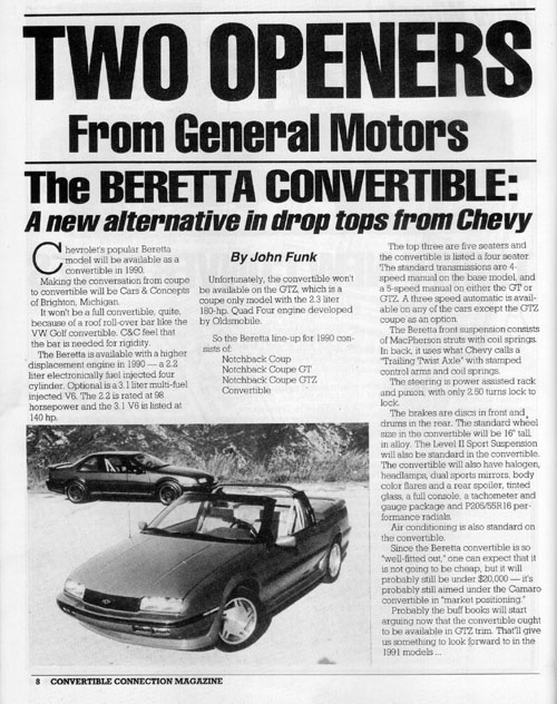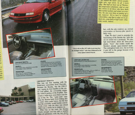 -Thanks to Jim Metz for the above three JPGs -Above 2 JPGs taken from Convertible Connection Magazine -Above 5 JPGs taken from Automobile Magazine -Thanks to Seth Kussmaul for all the above Beretta Convertible Pics