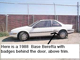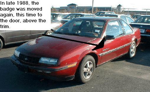For 1989 the badge stayed just behind the front of the door, above the black trim. Look at other pictures in the models section to see the difference.