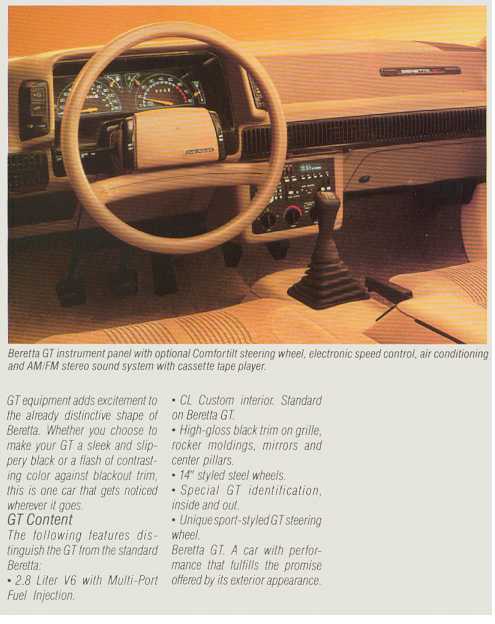In 1988 Beretta was available in three distinct models. The Base Beretta, the Beretta GT and the Beretta GTU. Read on to learn about each model and how they differed greatly from each other based on suspension and appearance while sharing key components such as interior appointments.