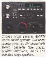 AM FM stereo, cassette, tape player, graphic equalizer, clock and extended range
