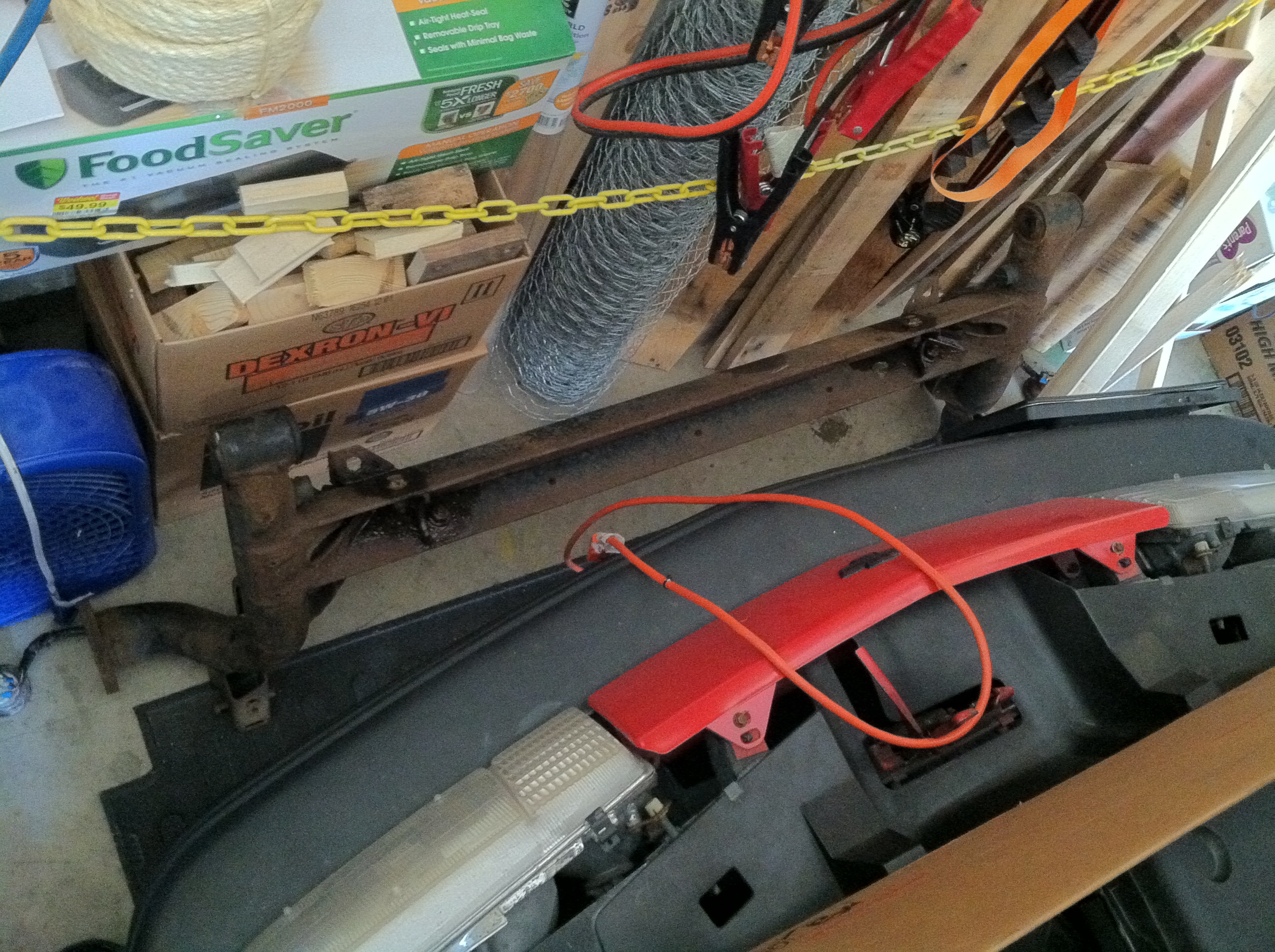 Here's my score for the trip! The hood peeled quite a bit, I scraped all the bubbles off after I took the photo of it. It's mainly on the left side, lots of small spots in the middle, and a medium size mark on the right side. All fixable. I also have to use some POR15 on the inside of the hood lip and a few spots on the inside of the fender, but I already have the POR15 anyways!
