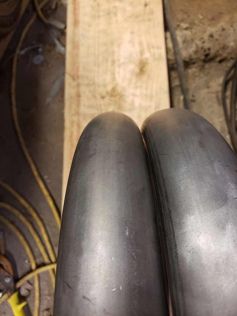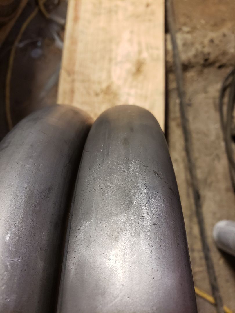 for comparison purposes, here is a mandrel bend vs a non mandrel bend. I forgot to adjust the mandrel back to where it goes on the 2nd one.. so it was in the tube, but a few inches away from the bend making it pointless. You can see how much better the bend quality is!