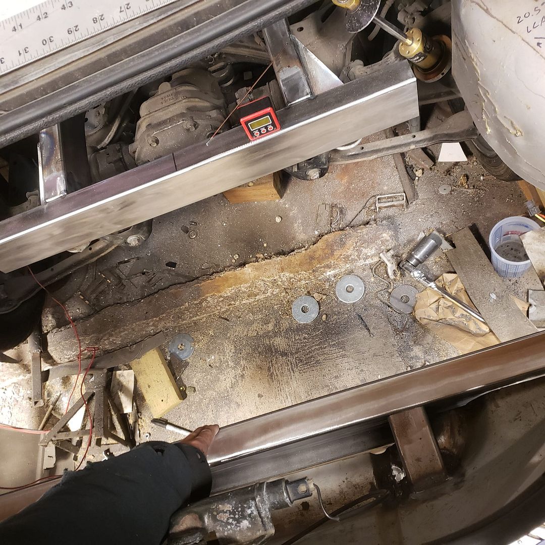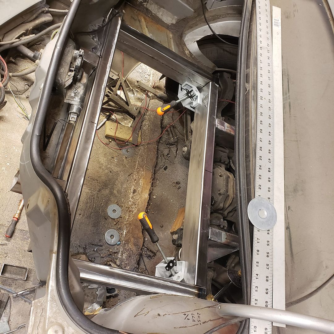 Front section tacked in. Its as far forward as I could get it. And guess what? I didnt account for the 2" frame when I measured for the fuel cell haha. So back farther than planned it goes..