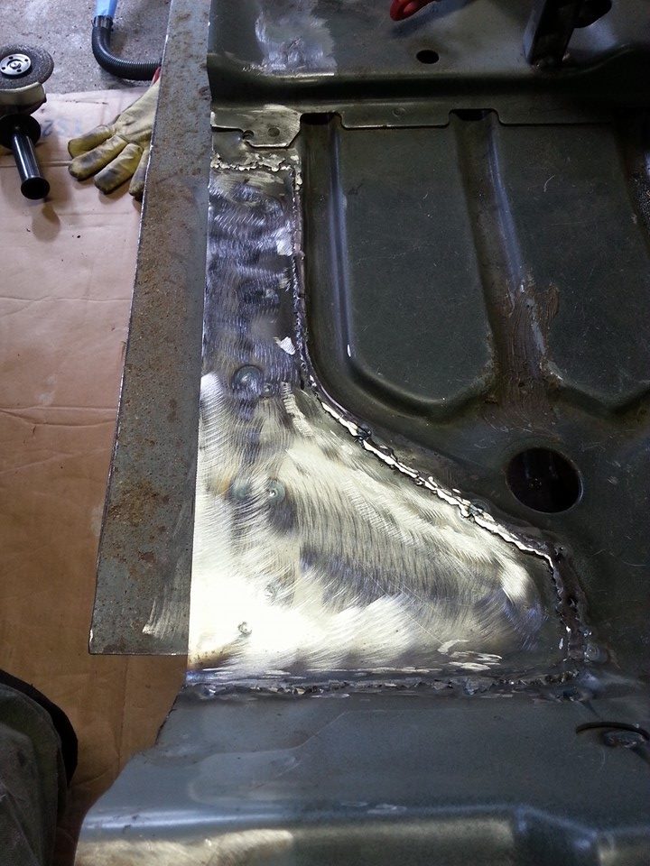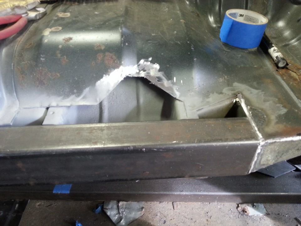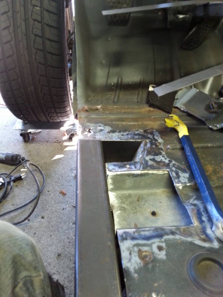 Cleaned up the old rail inners and welded in new body rails on floor pan....