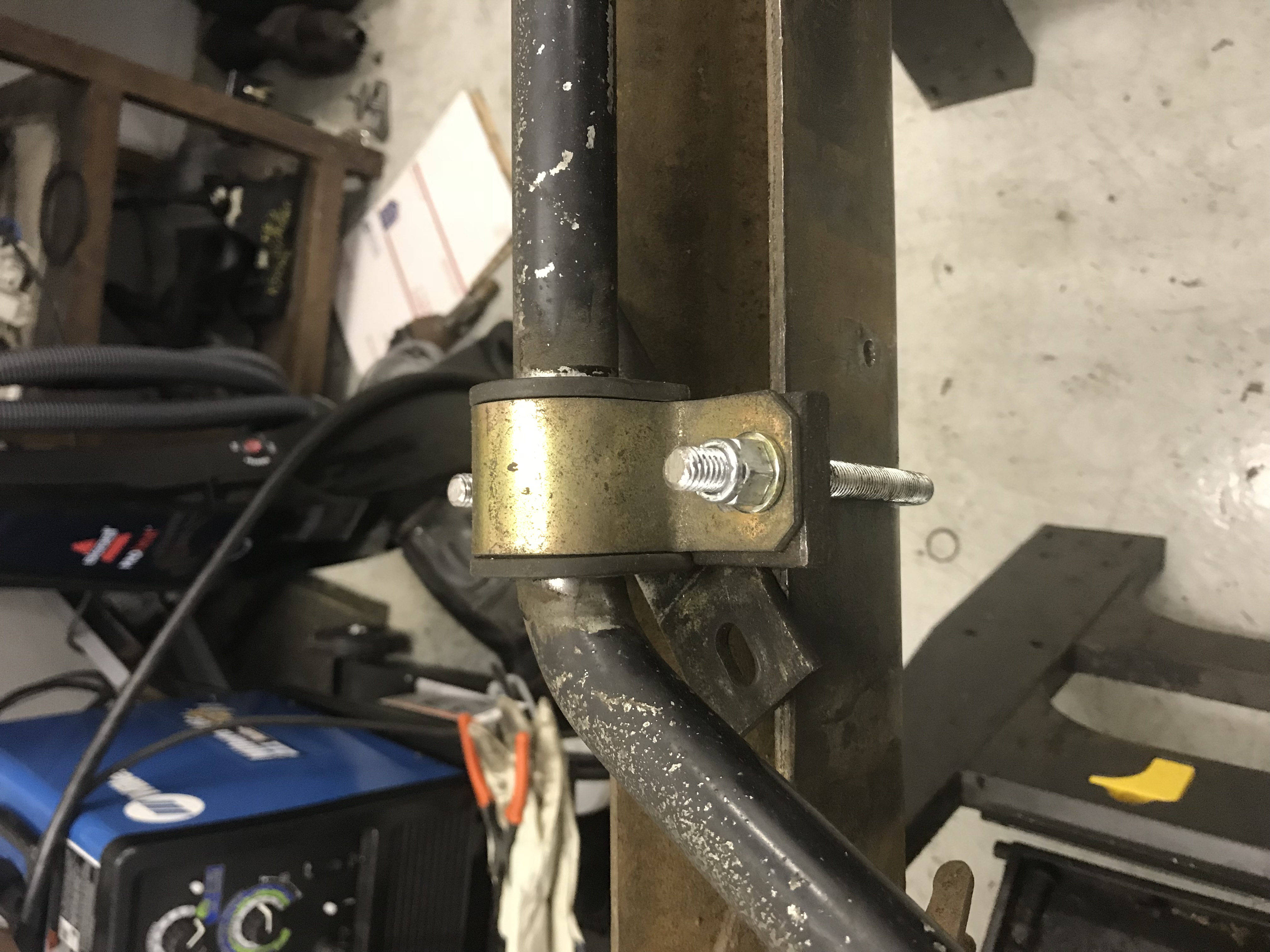 Shane and Brian really did most if not all the work on the axle. They stripped it down (I bought it loaded with everything on it still), cleaned it up some, got the bushings burned out and removed the steel from the bushing. Later, Brian positioned and welded in the Wolfe Racing adjustable coilover spring mounts, then we looked at how to mount the 26mm Addco bar to the axle. The "beam" section on the J-body axle is narrower than the L-body axle, so the Addco mounting hardware wouldn't swap over. A trip to Lowes solved that with some 3/8" all-thread for the center mounts over the beam. We reused, but modified, the Addco hardware from my old setup. For the ends of the bar, we again reused the old hardware, but tapped, threaded, and welded in studs for the bar to mount to. Then Brian welded them into place after careful measurement.