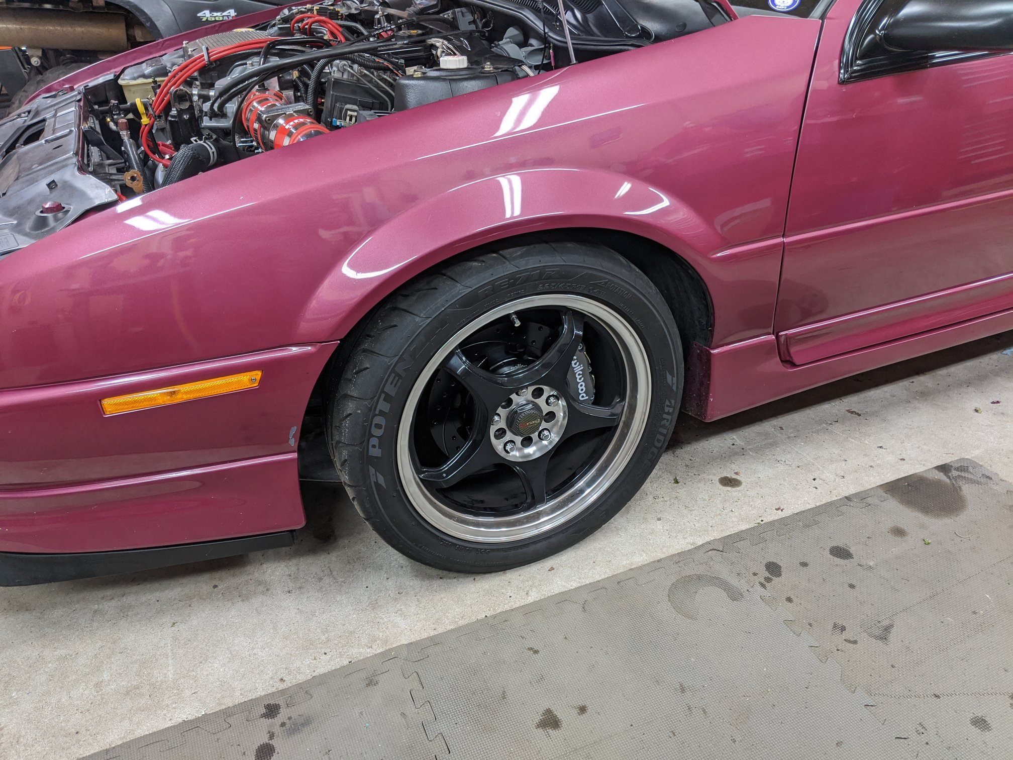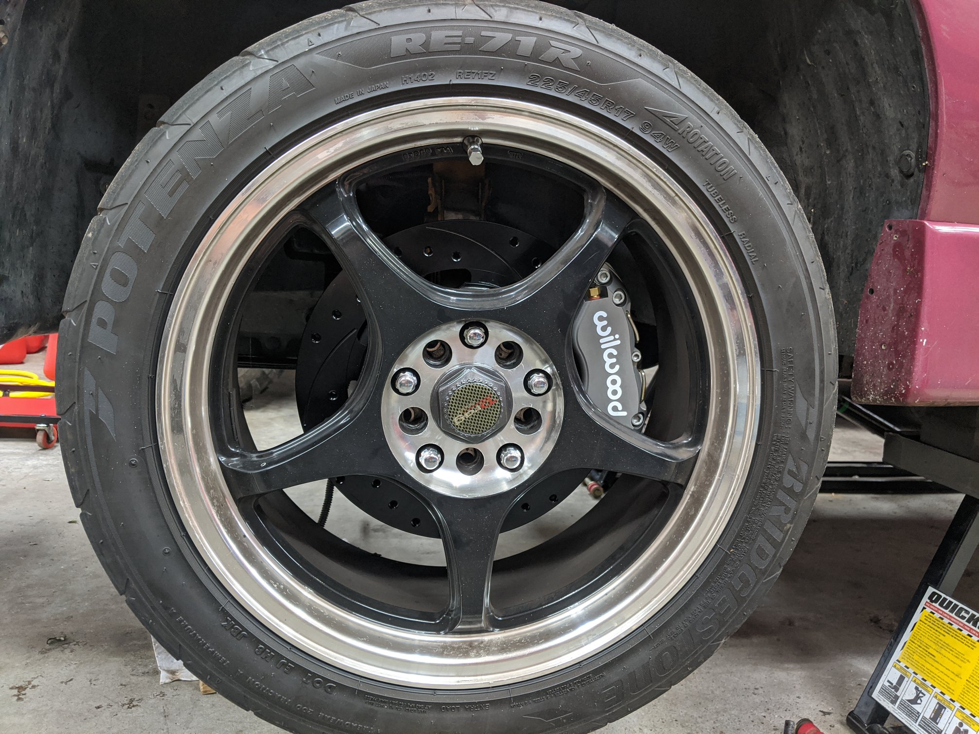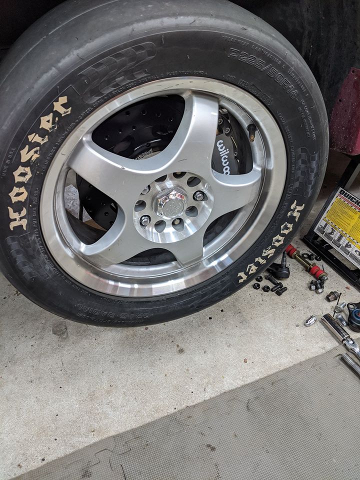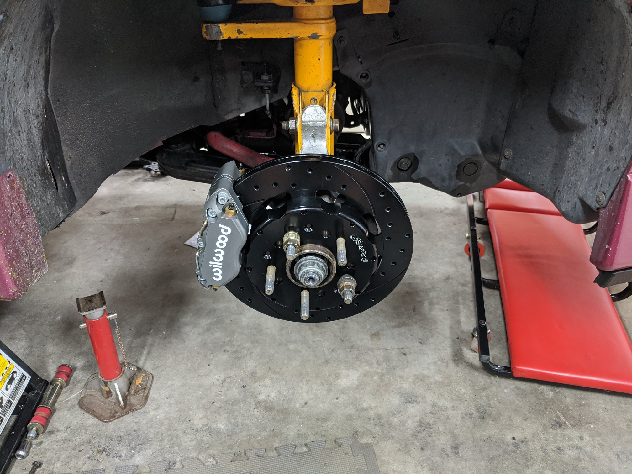 This project took a bit of fitting since I bought a 2000 Camaro Drag Race kit assuming it would fit since I can run 2000 Camaro brakes. Long story short, Factory brakes the abutment bracket mounts to the inside of the knuckle, Wilwood decided to mount theirs to the back side of the knuckle, and the N-body one isn't as thick as the F-body one. This resulted it me having to source a shorter rotor hat to bring the offset in. Thankfully I found a combo that worked and helped the rotor also clear the ball joints which was another interference issue.