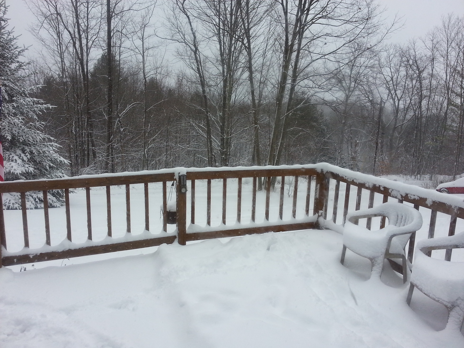 Got a light dusting here, I'm not too happy at the moment. I was looking forward to getting to plow the drive with the quad.