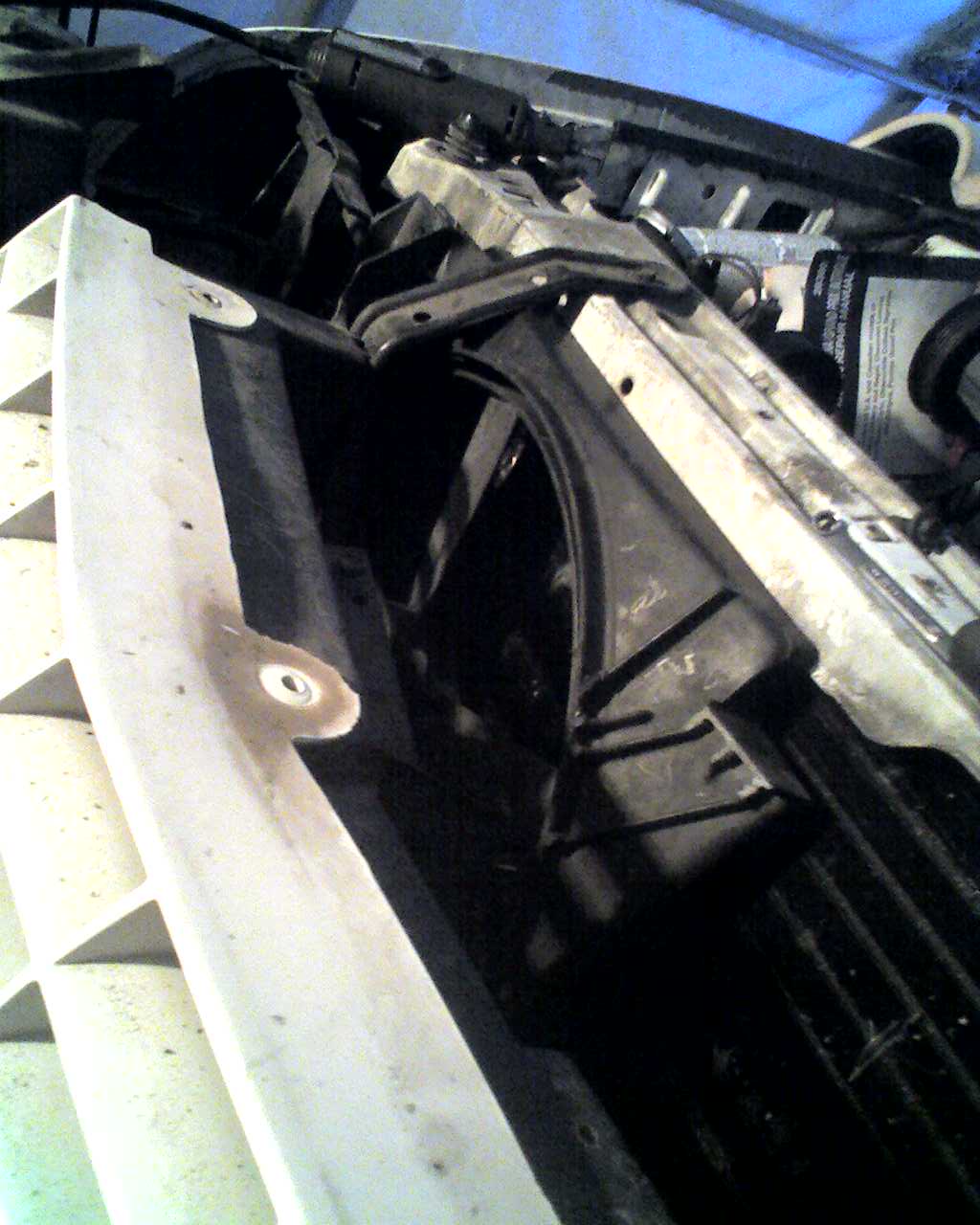 So, I would recommend looking into a decent pusher-fan if you are having troubles with fan-blades exploding all over the engine-bay and doing damage, which seems to be a potential problem with Quads from the anecdotal evidence of two occurrences presented here. Re-using the factory fan as a pusher isn't ideal, but it is cheap (potentially free) and looks good, and it works for me, but not for 3400beretta. *Legal disclaimer: It may not be effective enough to trust a delicate Quad to, extensive Quad testing has yet to be accomplished.