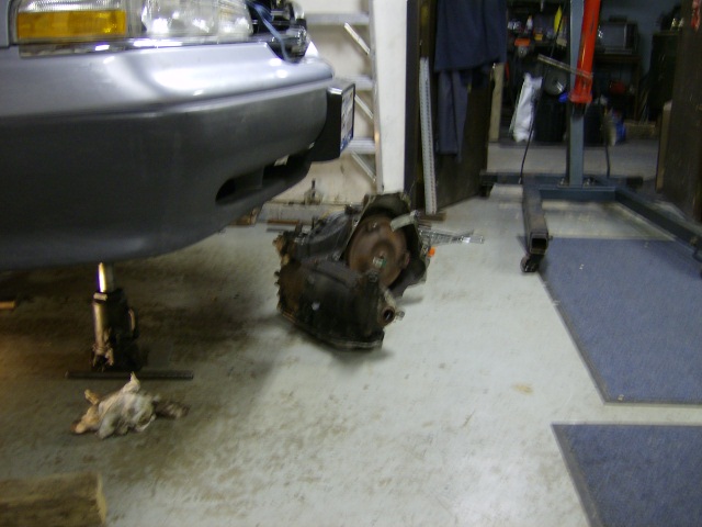 Since you have a hoist there, you can use it to reach down through the bay and hook onto the tranny when you are ready to pull it back in. I've done that a few times too -works like a charm usually. Better than using ratchet-straps (with safety chains, of course) to leverage a transaxle up... :roll: