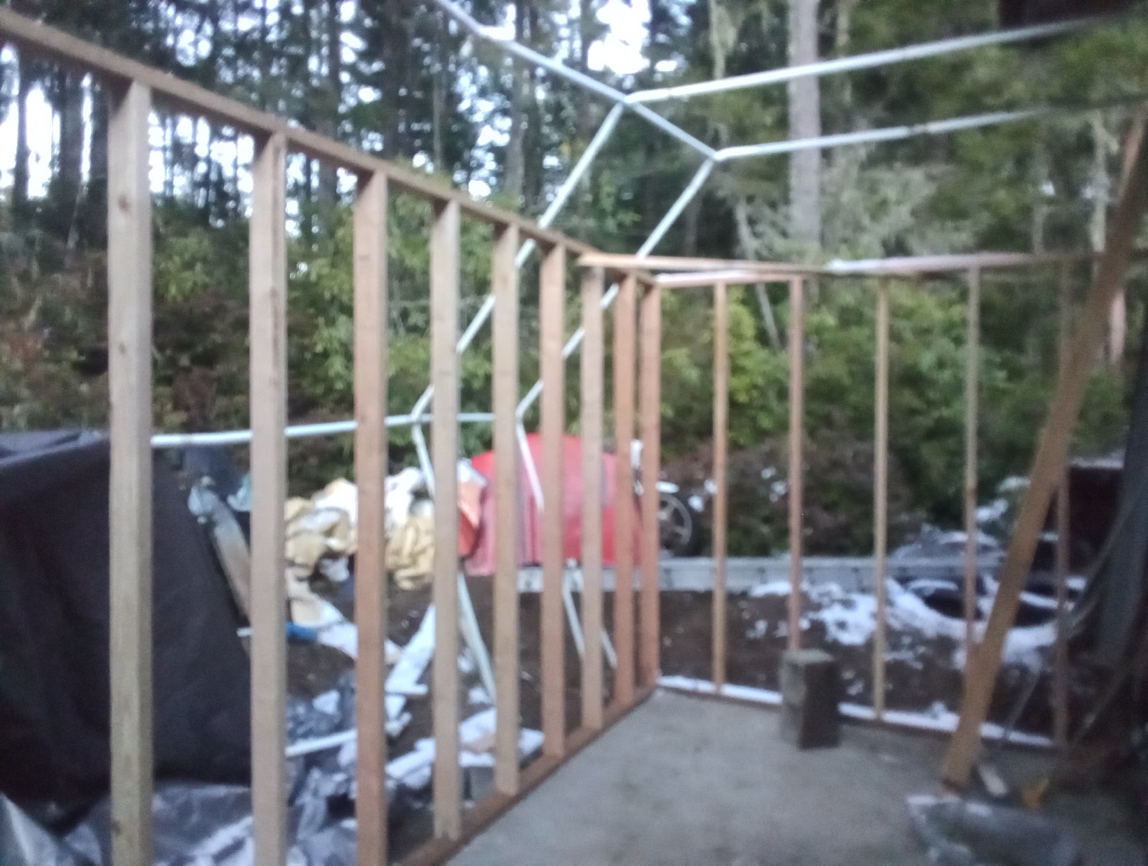 Once the walls and roof go up, I will transfer over my seven-engine storage-'rack', probably expand it out to about double that capacity, install my transaxle storage 'beam' as well, and then relocate the stairs I made up to the storage loft to the back wall of the lift-bay where the engines are stored now. This will give me enough room in that bay to walk AROUND my lift!