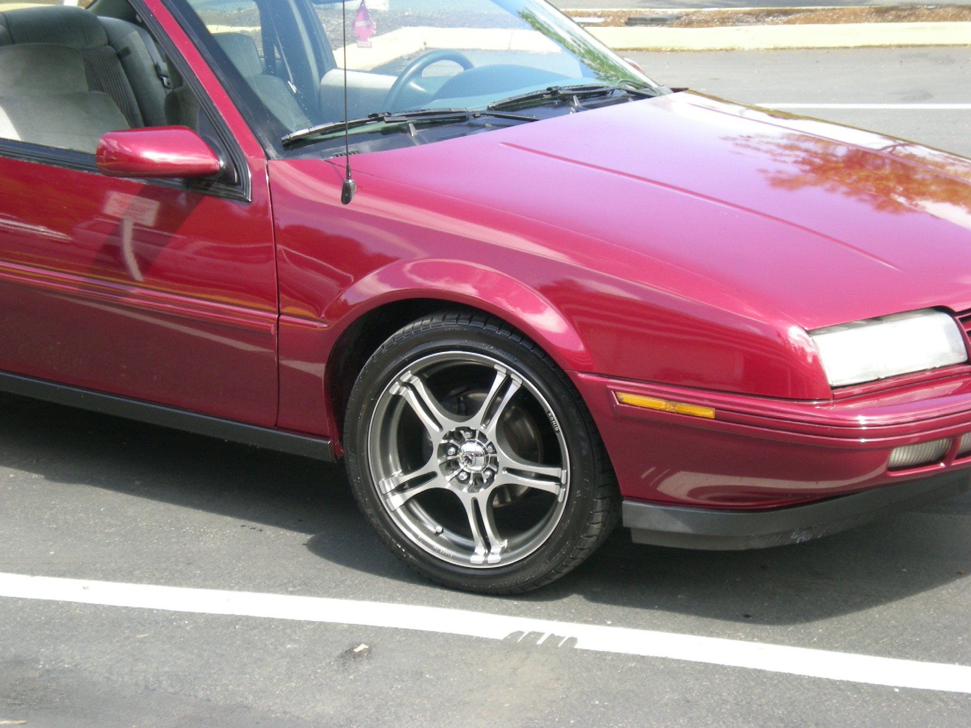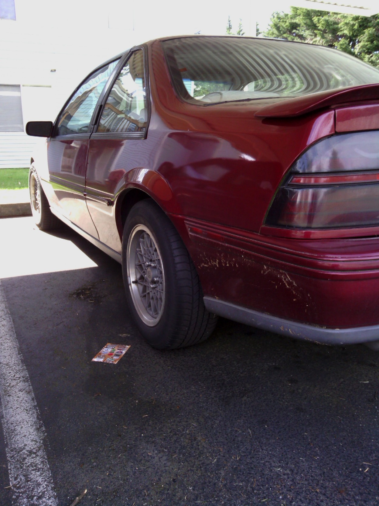 in the meantime, stock fiero rims. obviously not a fwd offset but i like the way they look even if they make a bit of a mess