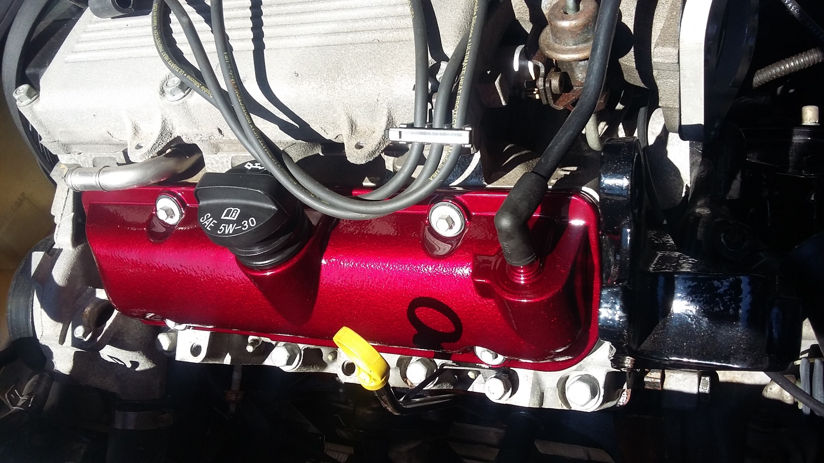 7 year update.... managed to spend time off and on with the car, but not nearly what I would've liked. Pulled the engine and installed the wottech stage 2 cam kit and injectors, modified and jet coated S&S headers, a high flow pusher fan setup, threw in the FE7 front bar in while the engine was out, threw in the koni adjustables in with the eibachs, and the neon rear discs. Changed the wheels to OZ Ultraleggeras with some sticky Firestone Firehawks. Still haven't gotten a proper tune which is irritating.