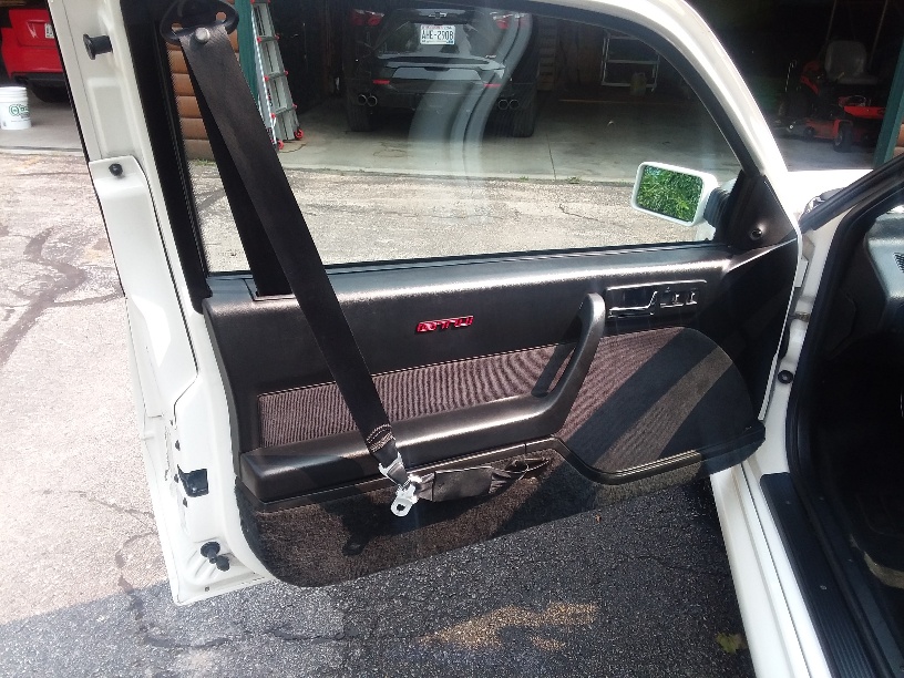 Then when the covid mess hit, I was gifted with some time off so I finally swapped in the black interior. Had a custom shift knob made which I think turned out pretty well. Still need to fix the fender and door dent, but I'm at the point where the car is too far down on the list to get the attention.