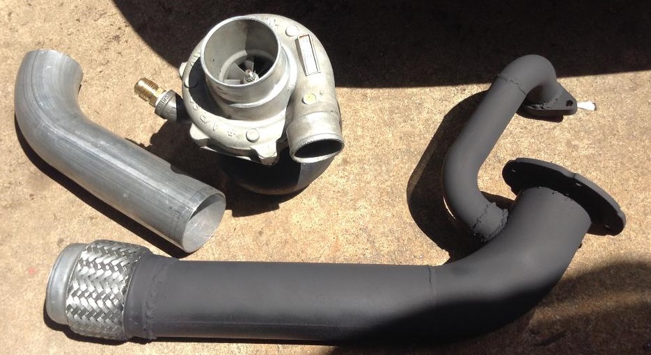 -Complete exhaust downpipe (with O2 Sensor bung), flex-joint, and waste-gate dump-pipe fabrication. Wrap pipe with the header-wrap.