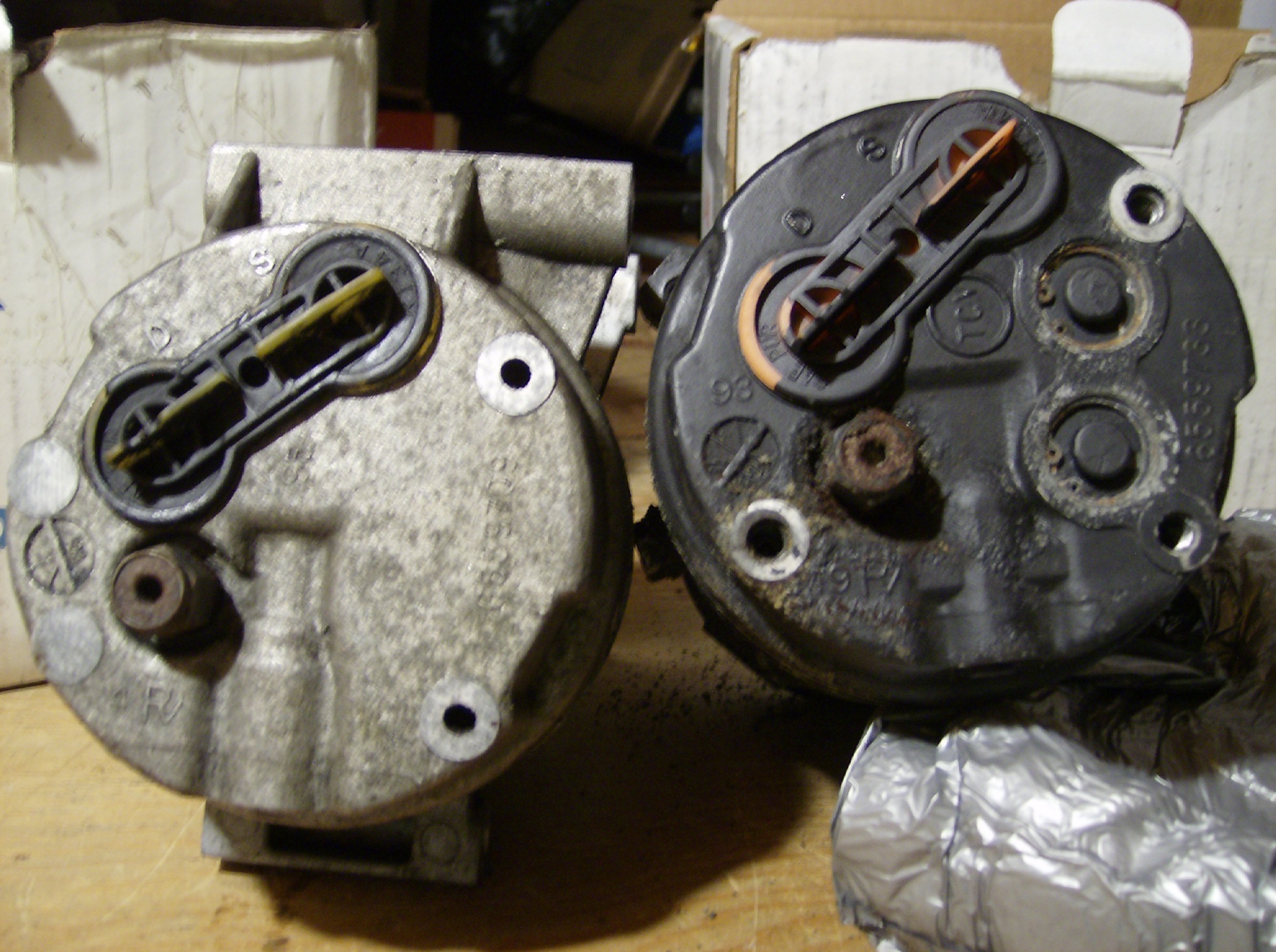 Here is a picture of my old 96 compressor on the left and my old 94 on the right which has the two extra plugged ports for a switch.