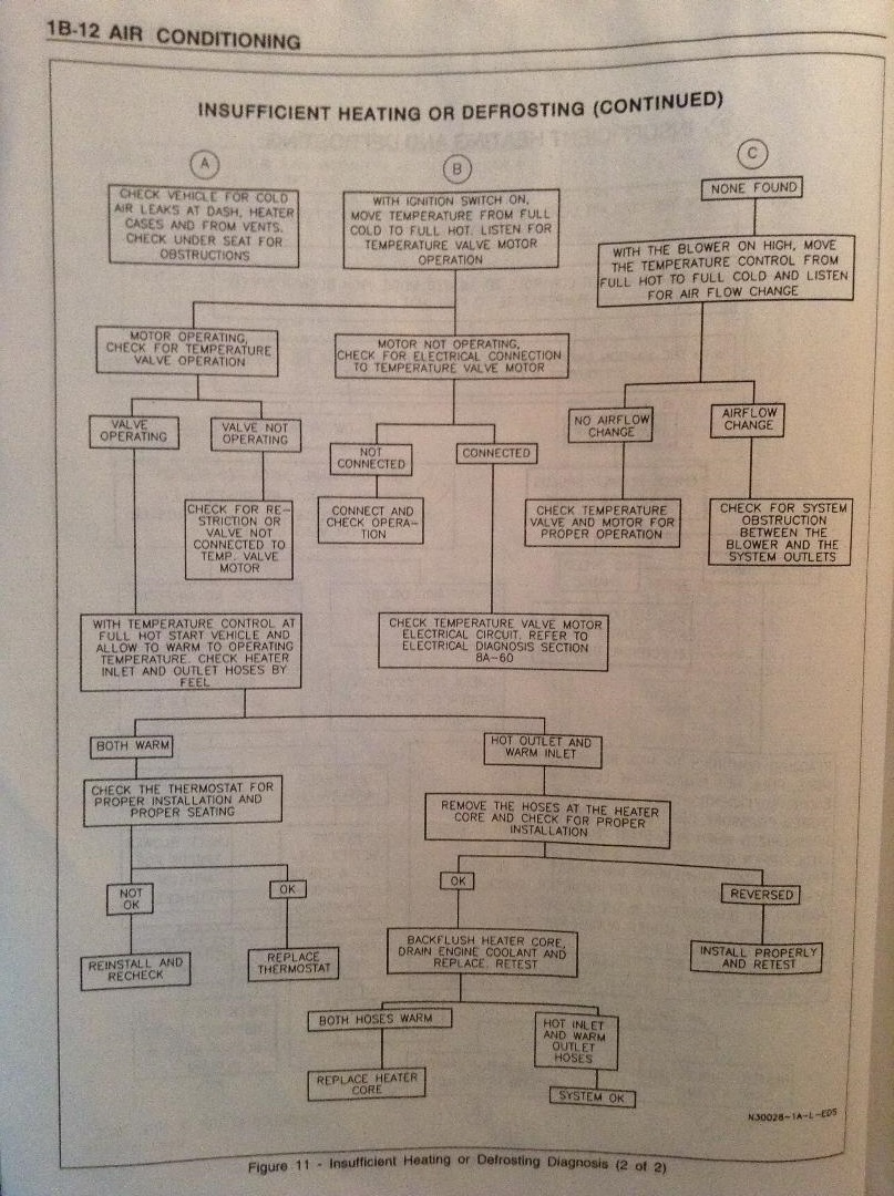 Rettax3 wrote:Here is GM's diagnostic tree -this is from the '95 L-Body service manual, but should apply to your '96 for this system. I'm also posting the assembly schematic and parts identifying list. Note the 'Temperature Motor' is known as a 'Blend Door Actuator' in most of the industry in case you need to look for a replacement, but I am suspecting that something is binding or loose on your blend door causing it to fail. Of course, it is controlled by the temp knob, so a problem in the control panel could cause a failure to operate too.