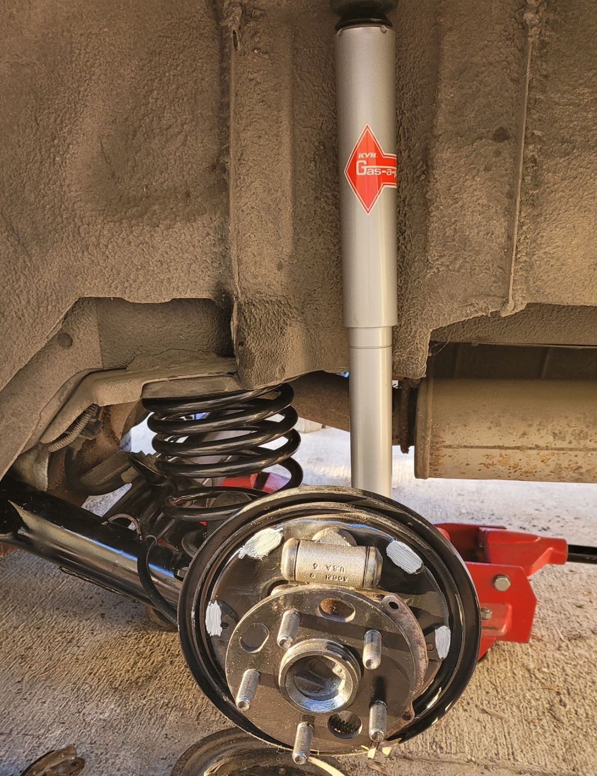 I completed the rear install of Eibach springs and KYB shocks. It was a very easy and straightforward install. Use a car jack to hold the rear subframe from falling when removing the old shocks! The old lower washers from the stock shocks will not work on the KYB shocks. I used just one washer that was included with the KYB kit and placed it between the strut and the upper rubber mount. That was the only way I could get it to work. I have seen a Monroe kit available for this situation but did not have that information at the time. The old stock top washer that's sits inside the trunk in the rubber mounts work fine. May order a Monroe kit in the future. Ignore the picture attached showing the stock washer on the struts. As mentioned above this has been addressed.