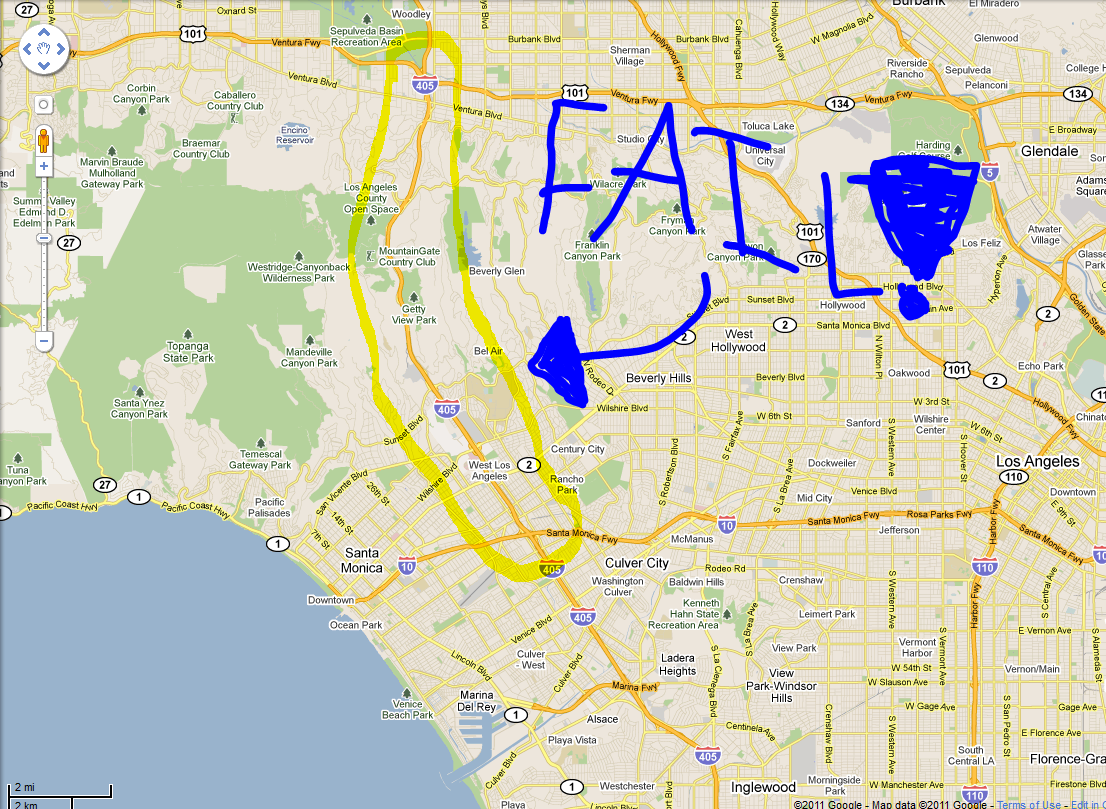 What you see here is a ten mile section of said freeway between two other MAJOR Interstate Highways, the 10 and the 101. This section will be CLOSED for the demolition of the Mulholland Bridge. It will be closed from the 15th through to the 18th. That is 3 DAYS that one of the most traffic-ridden motorways in the known universe will be closed!! The Los Angeles and Santa Monica Police Departments, Fire Departments and Hospitals are bracing themselves for what is expected to be a MASSIVE impact.