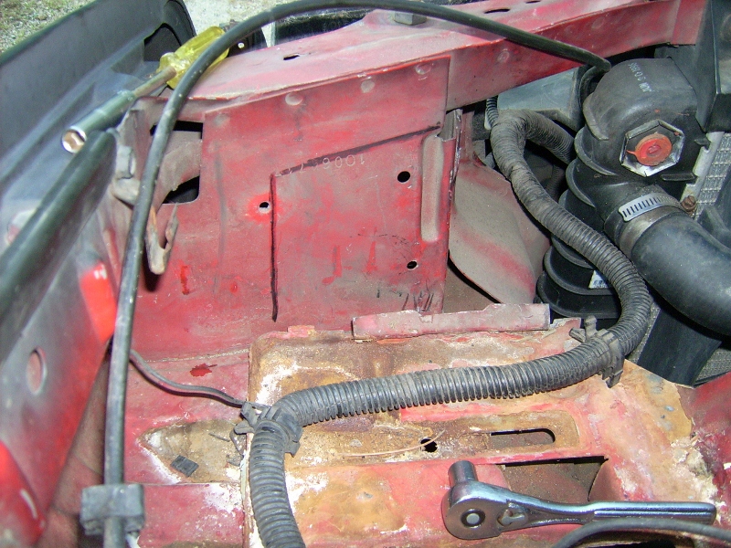 Looking for some info about where to cut the hole in the support for the intake pipe to pass through...I want to make sure before i start hackin- I'm guessing its somewhere around here?( lines drawn with a marker)